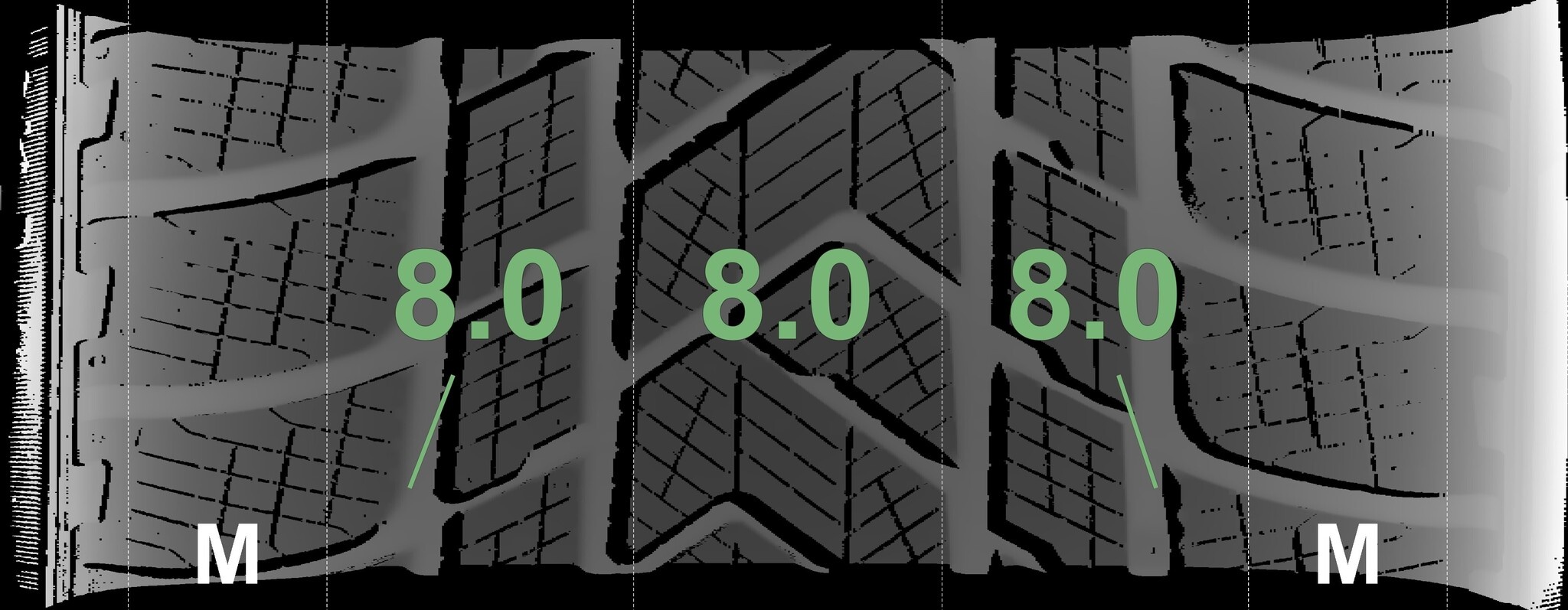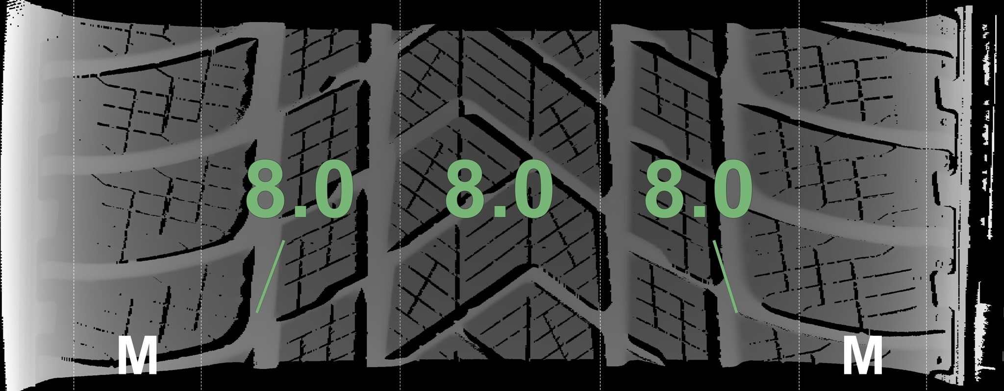 De gemeten profieldieptes en de details van de velgen zijn hierboven weergegeven.