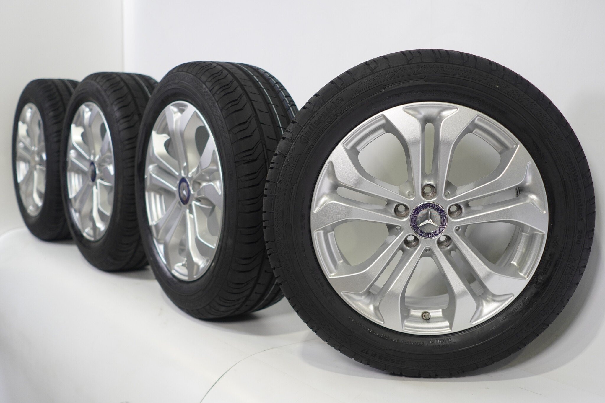 Originele wielset van Mercedes, styling 17 inch velgen met Continental ContiVanContact 200 Zomerbanden. Deze velgen zijn originele velgen van het merk Mercedes en geschikt voor: Mercedes V-klasse W447.