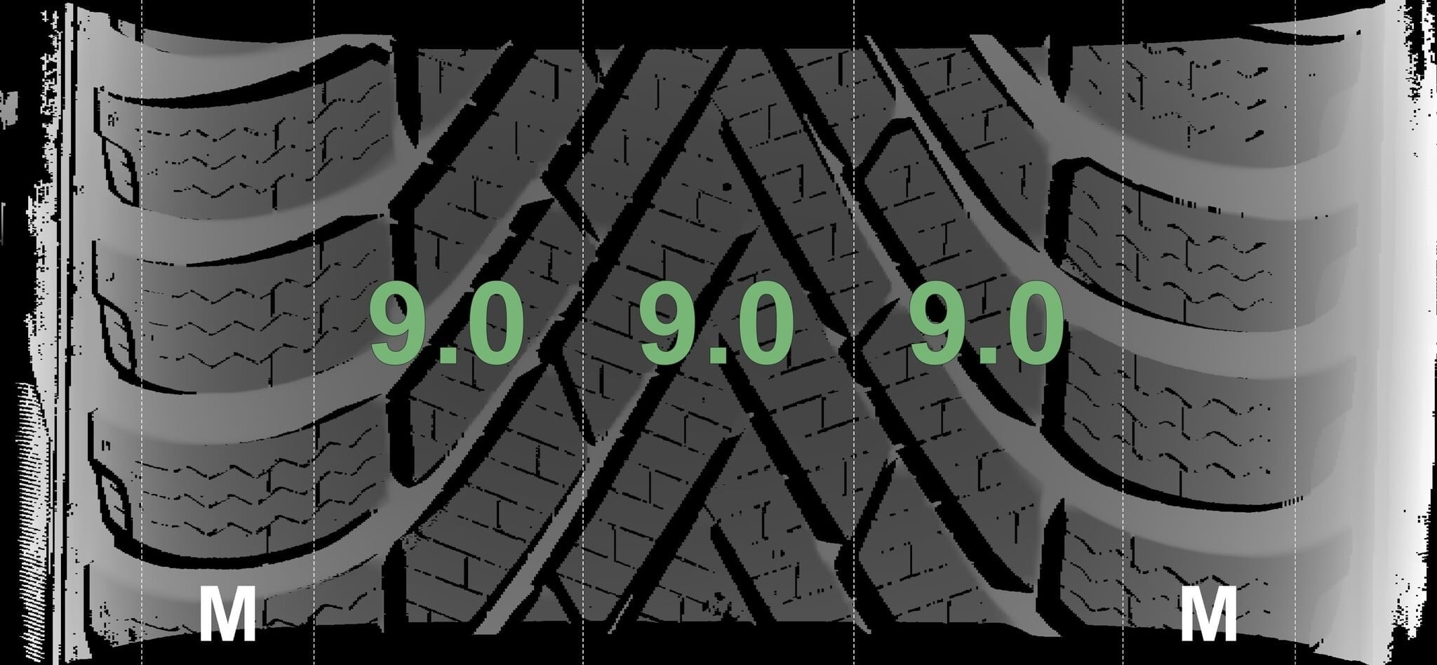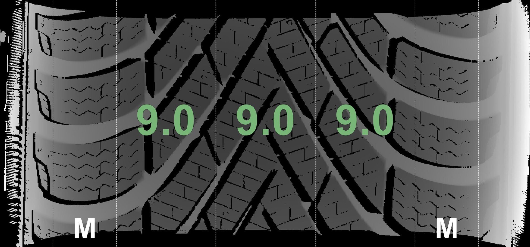 De gemeten profieldieptes en de details van de velgen zijn hierboven weergegeven.