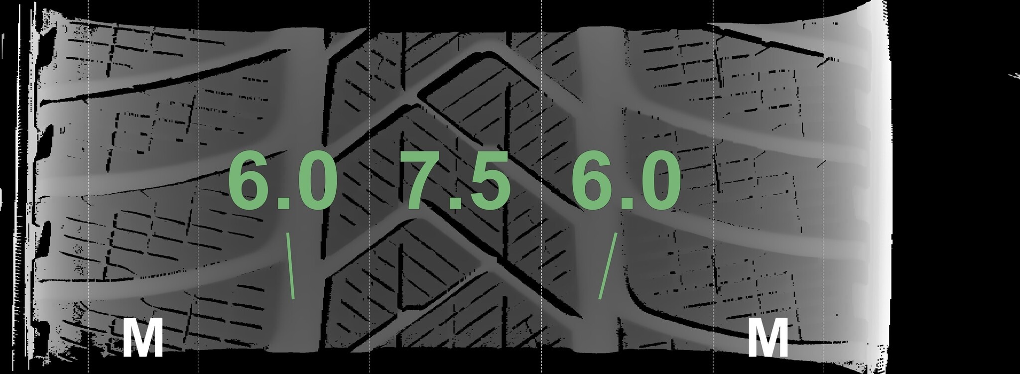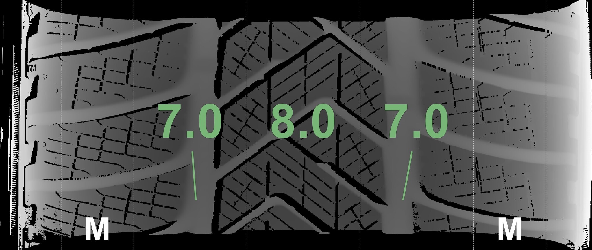 De gemeten profieldieptes en de details van de velgen zijn hierboven weergegeven.