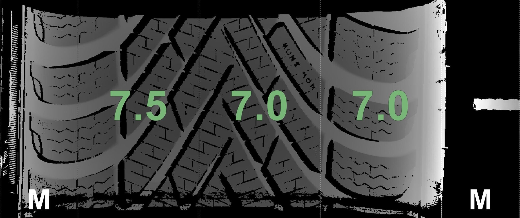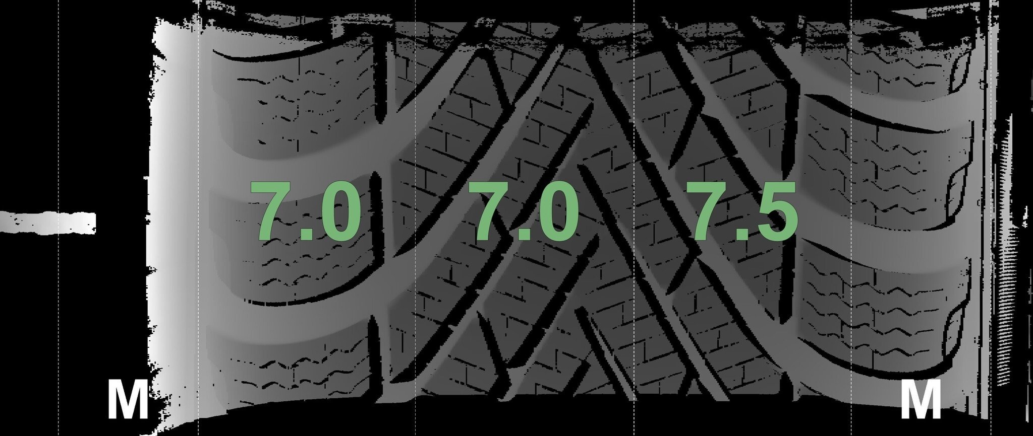 De gemeten profieldieptes en de details van de velgen zijn hierboven weergegeven.