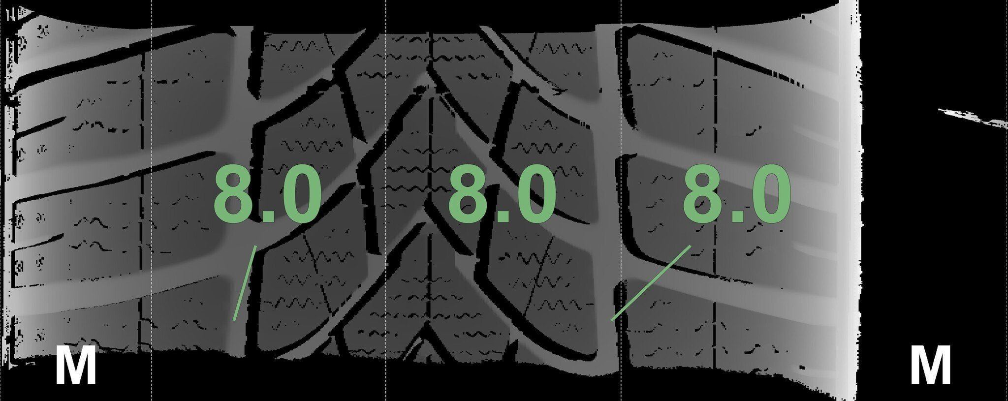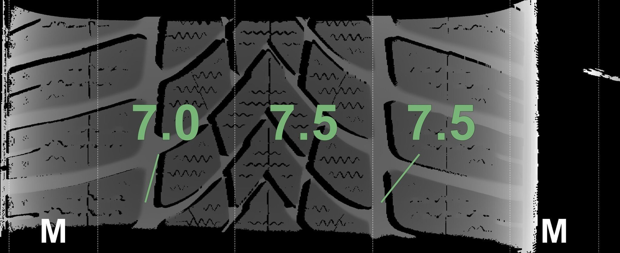 De gemeten profieldieptes en de details van de velgen zijn hierboven weergegeven.