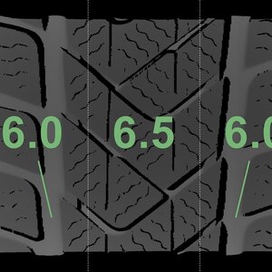 De gemeten profieldieptes en de details van de velgen zijn hierboven weergegeven.