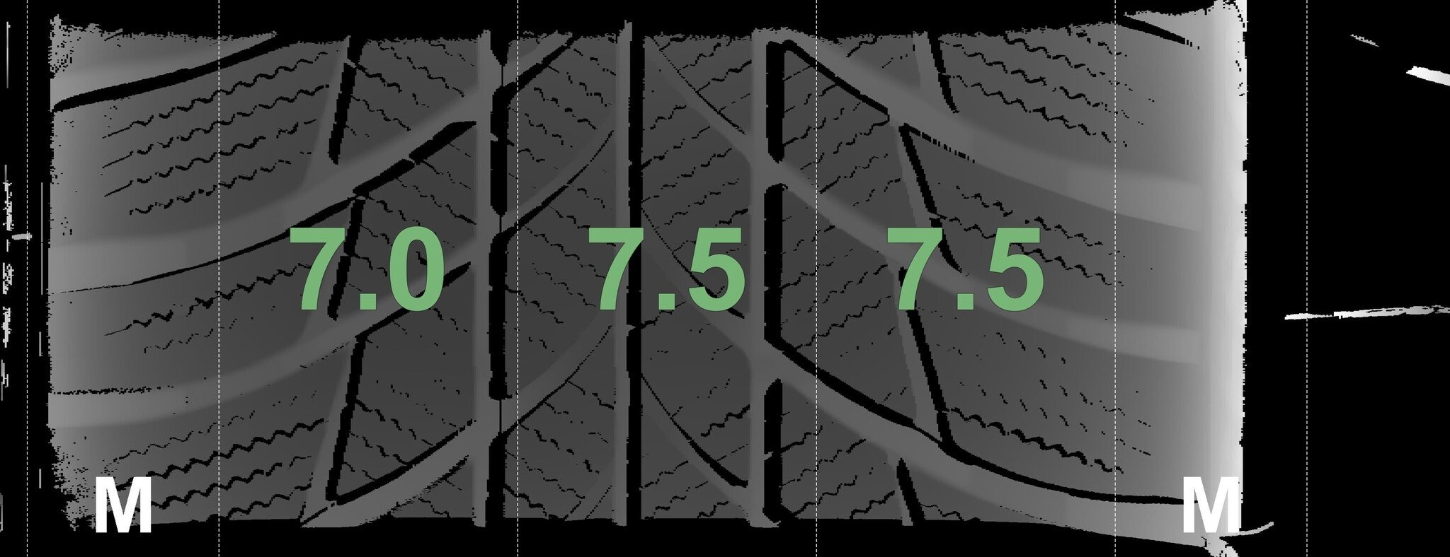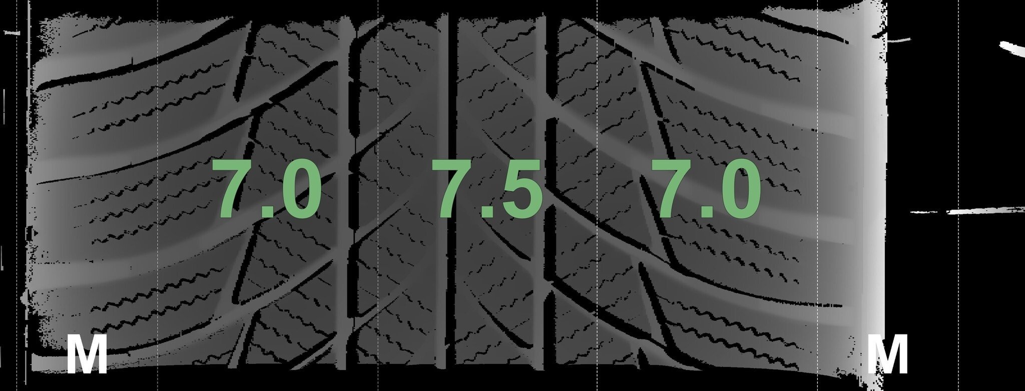 De gemeten profieldieptes en de details van de velgen zijn hierboven weergegeven.