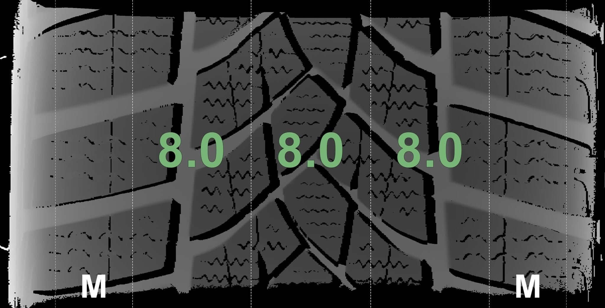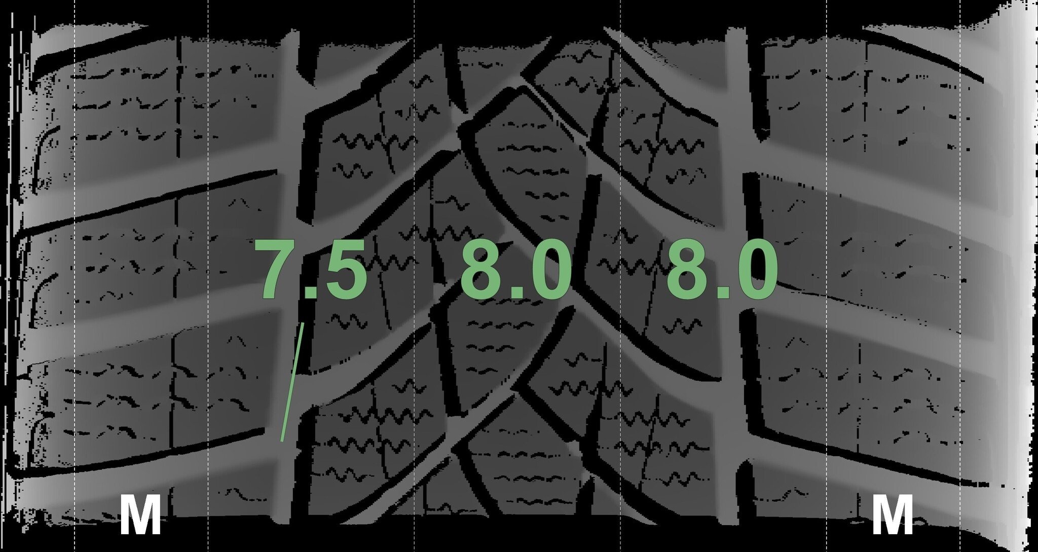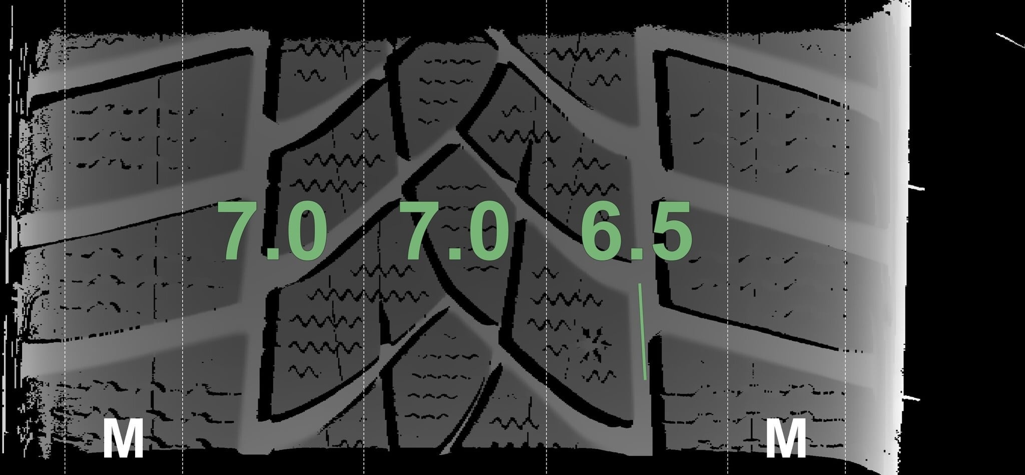 De gemeten profieldieptes en de details van de velgen zijn hierboven weergegeven.