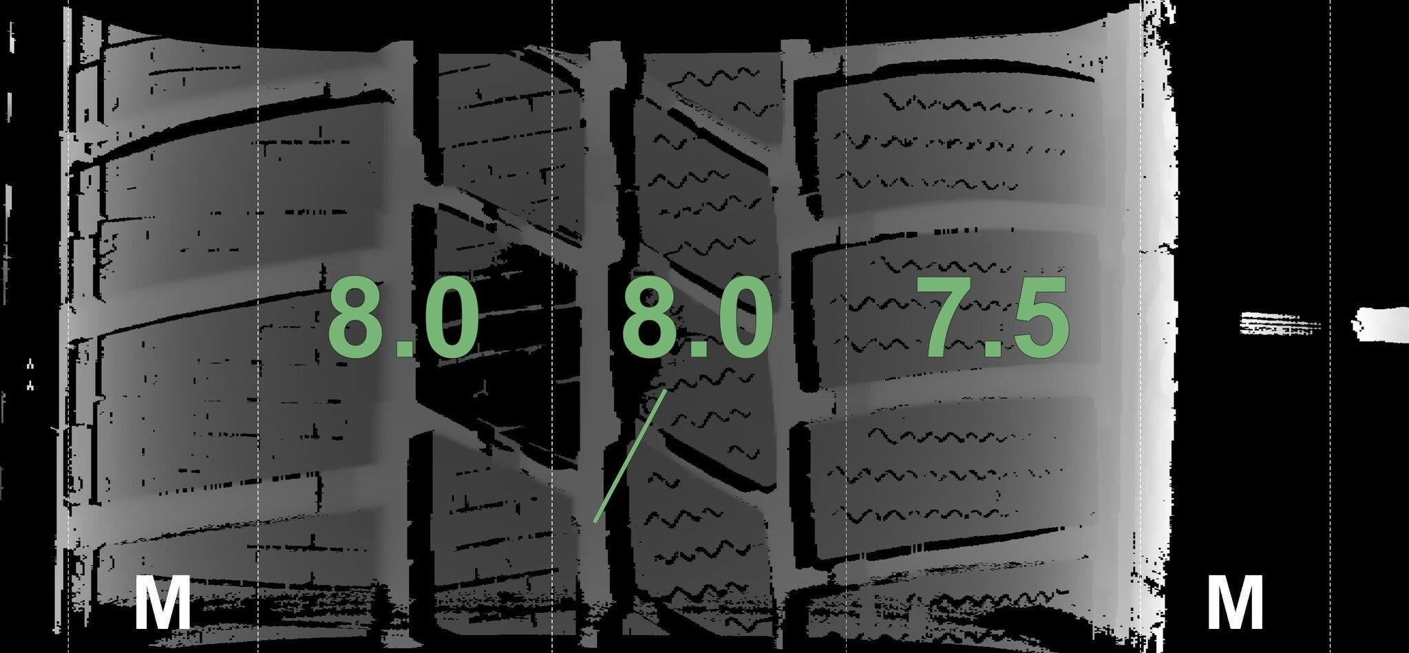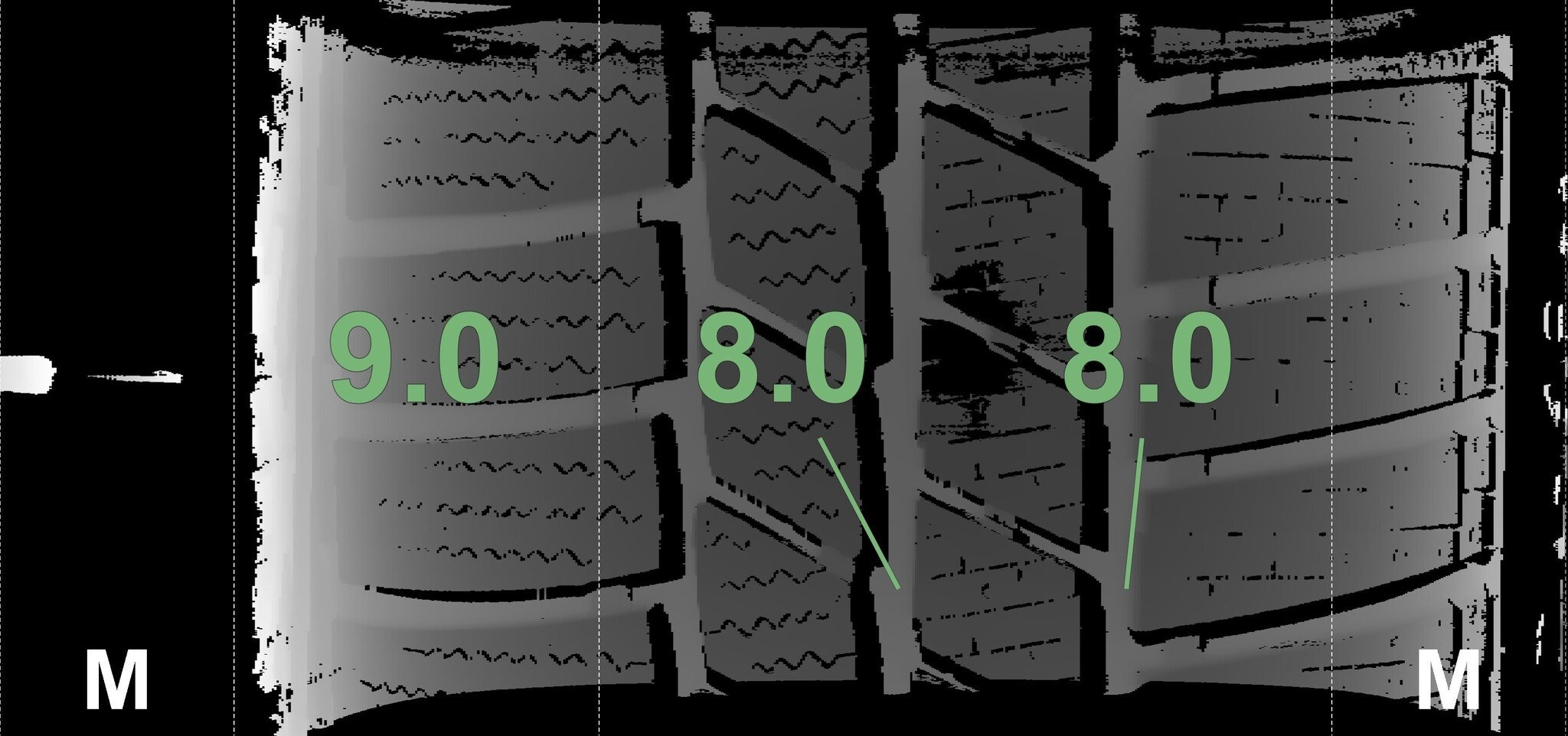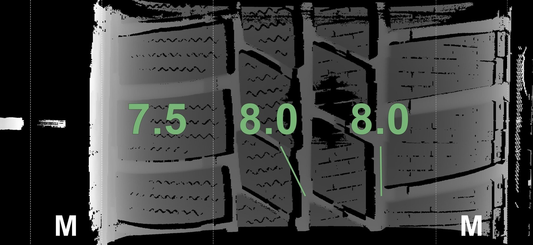De gemeten profieldieptes en de details van de velgen zijn hierboven weergegeven.
