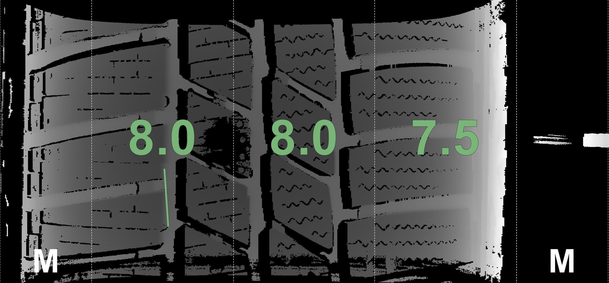 | Conditie | Profieldiepte | DOT | Rechts Voor | Nieuw | 7.5 mm | 4022 |