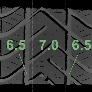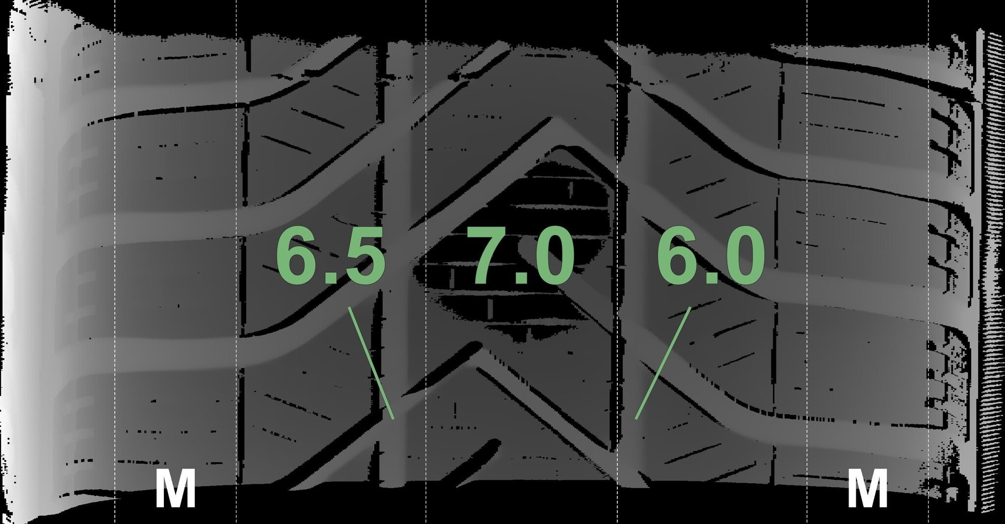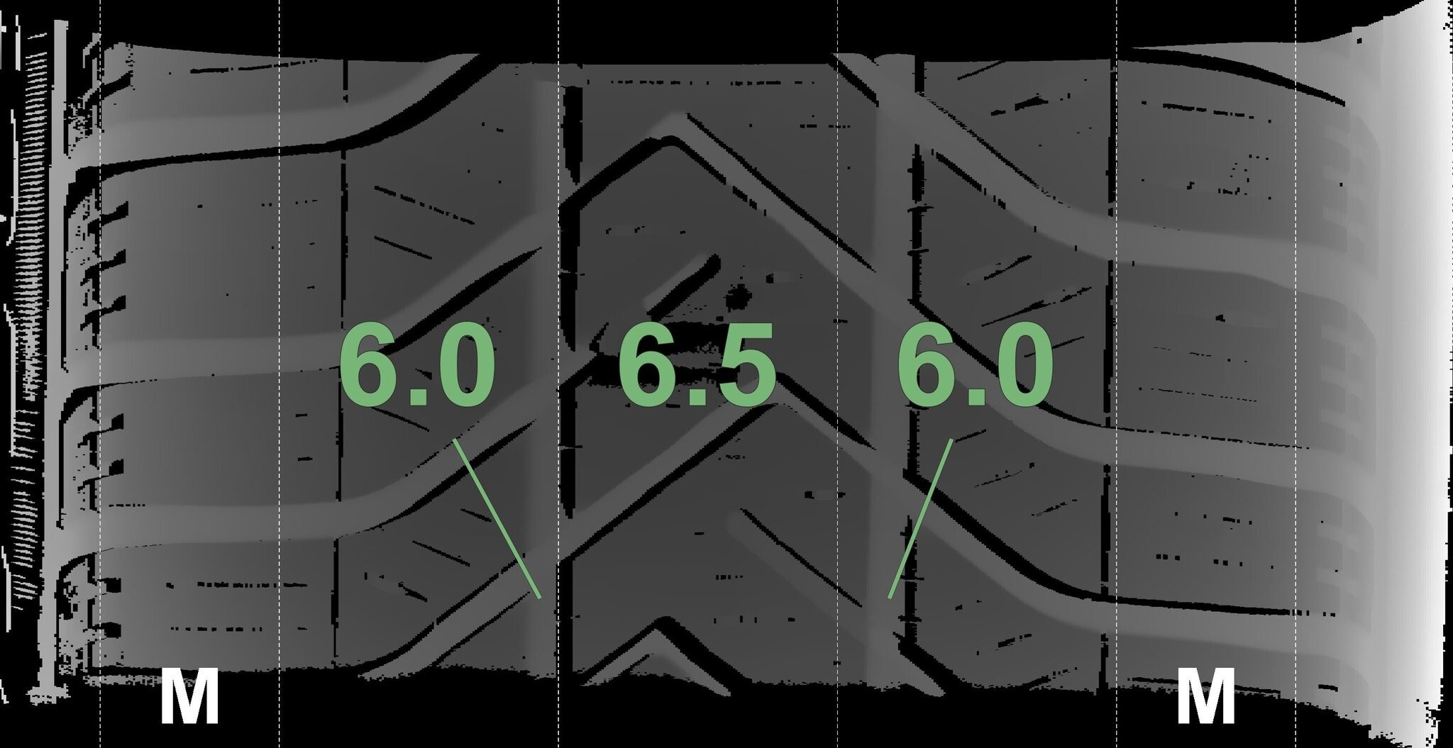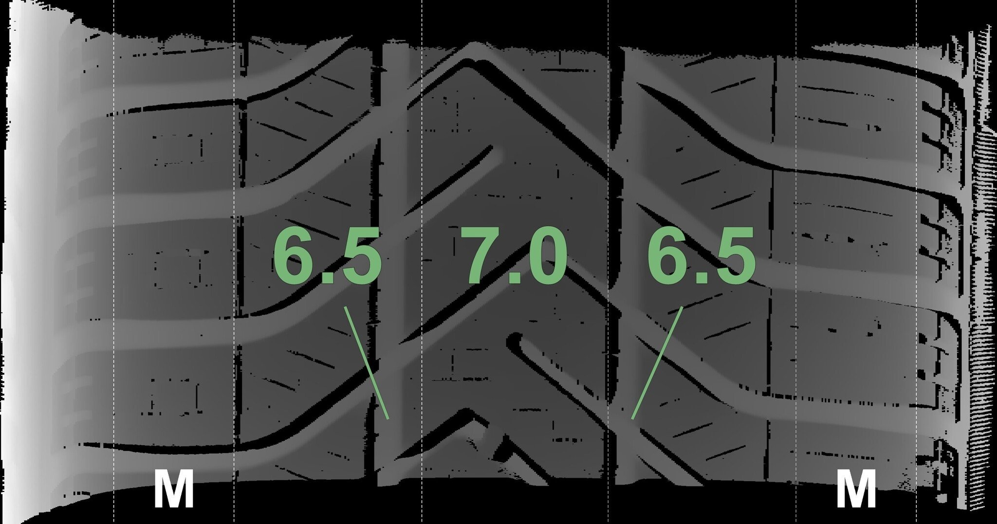 De gemeten profieldieptes en de details van de velgen zijn hierboven weergegeven.