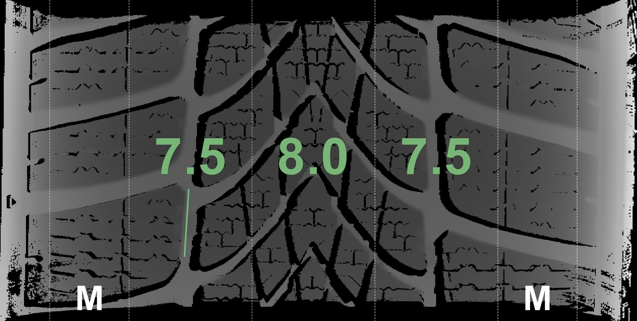 Conditie | Profieldiepte | DOT | Rechts Achter | Demo nopjes nog zichtbaar | 7.5 mm | 2920 |