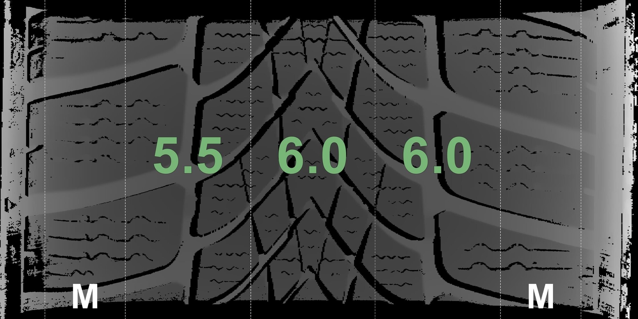 De gemeten profieldieptes en de details van de velgen zijn hierboven weergegeven.