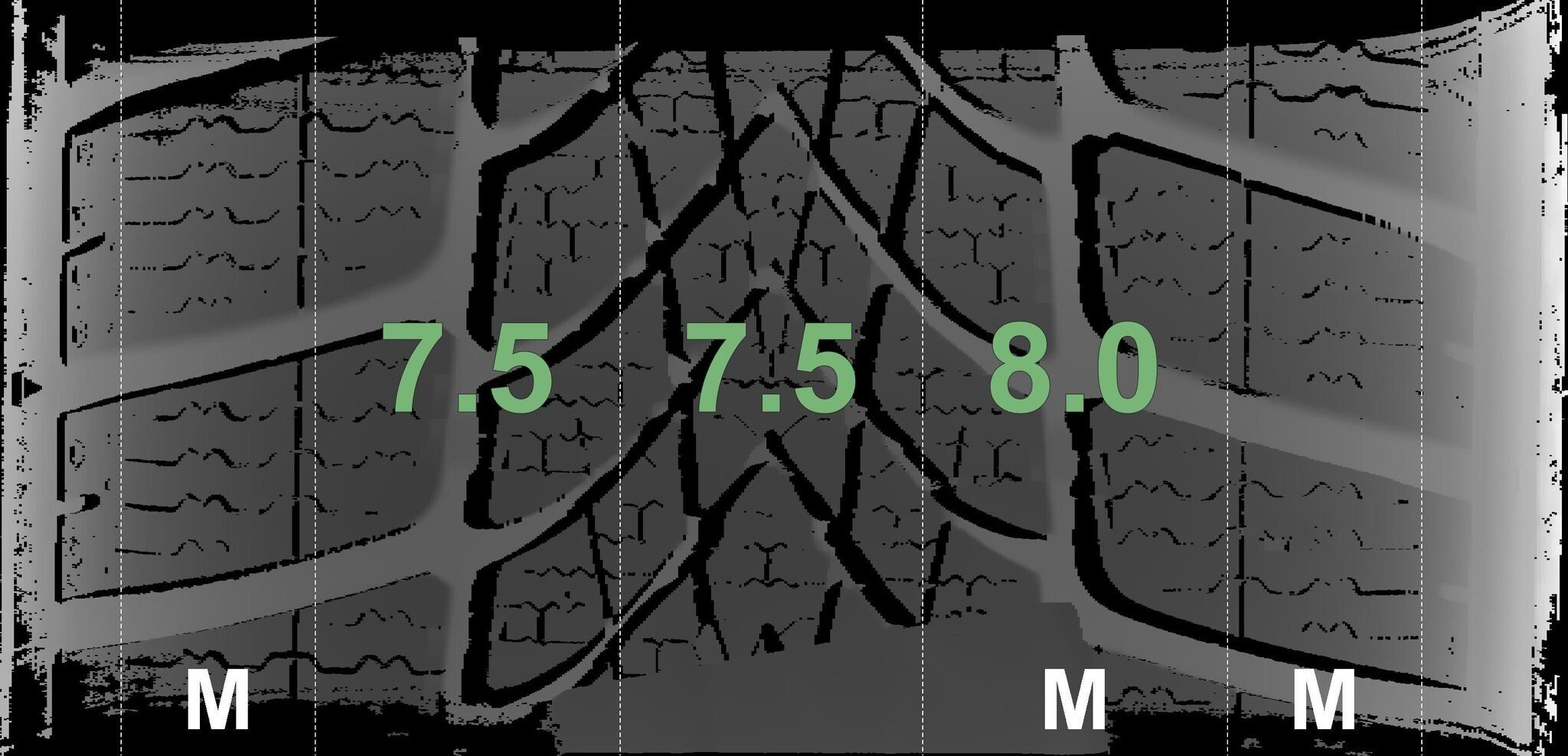 | Conditie | Profieldiepte | DOT | Links Achter | Gebruikt | 7.0 mm | 3323 |