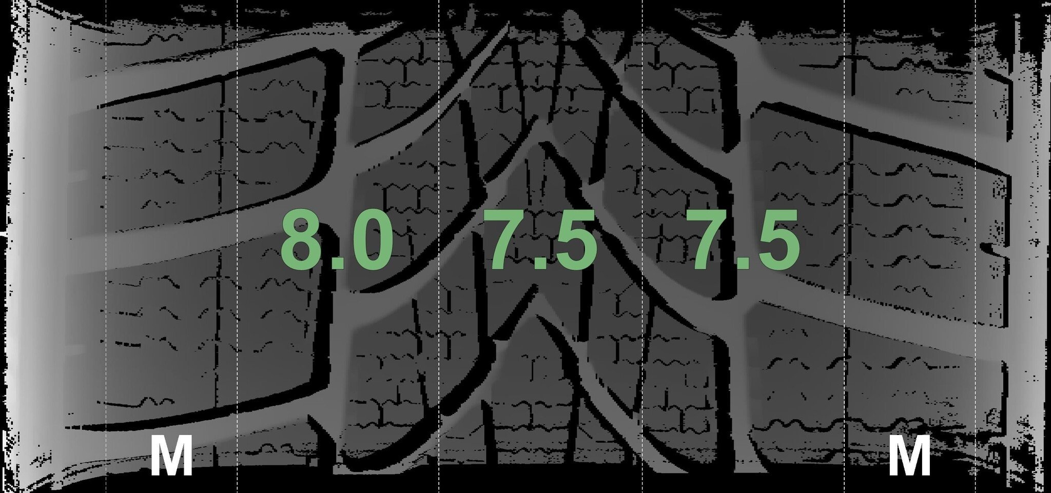 | Conditie | Profieldiepte | DOT | Rechts Achter | Gebruikt | 7.5 mm | 3323 |