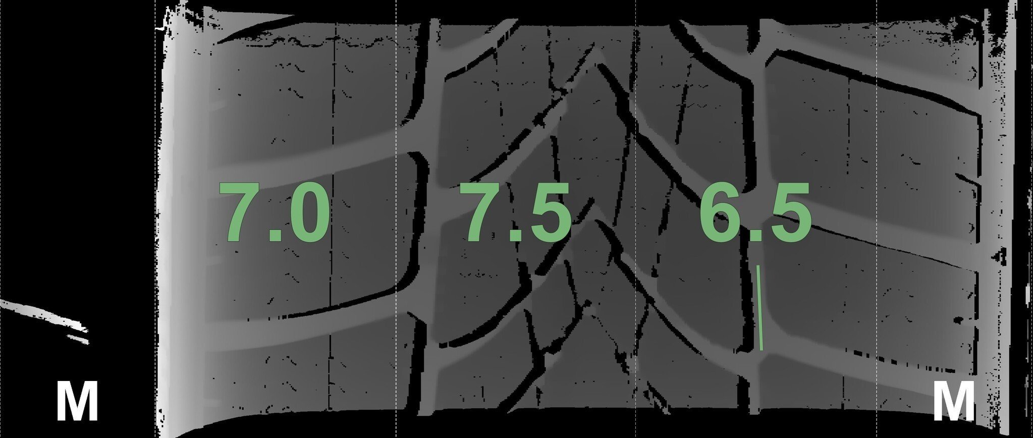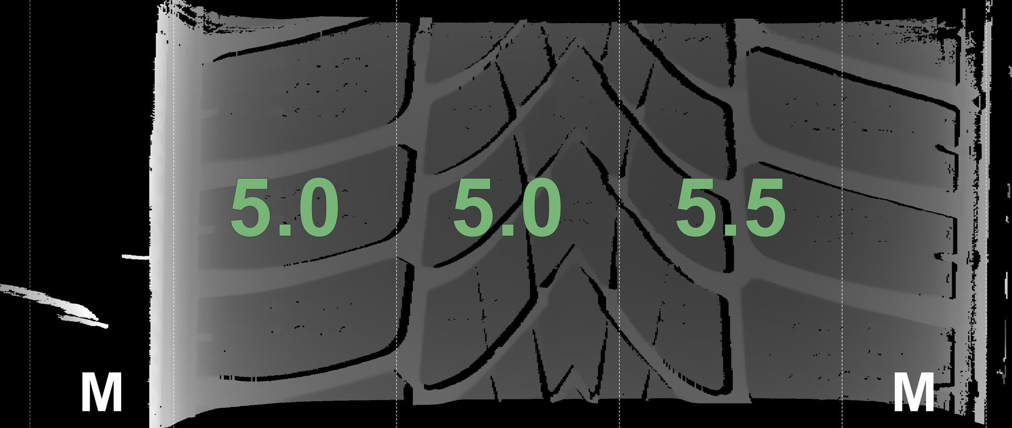 De gemeten profieldieptes en de details van de velgen zijn hierboven weergegeven.