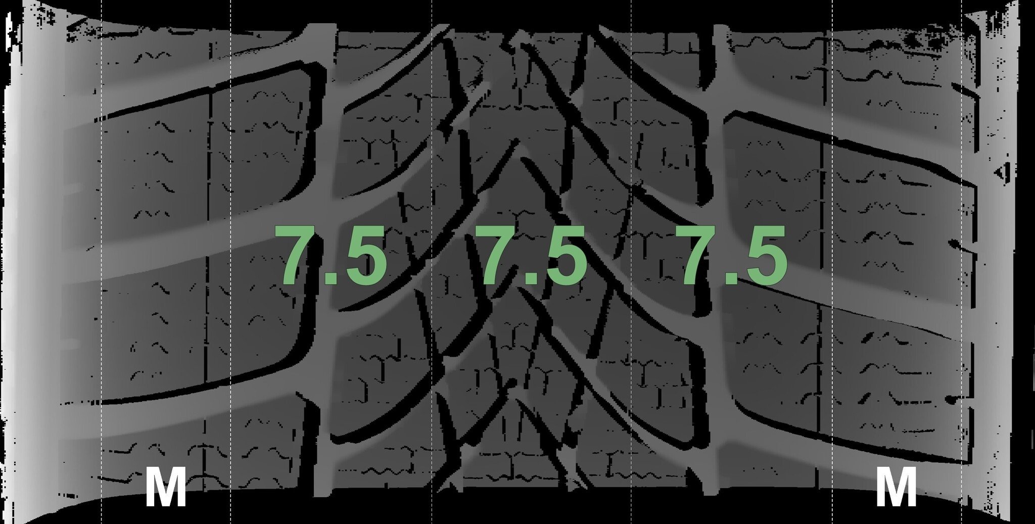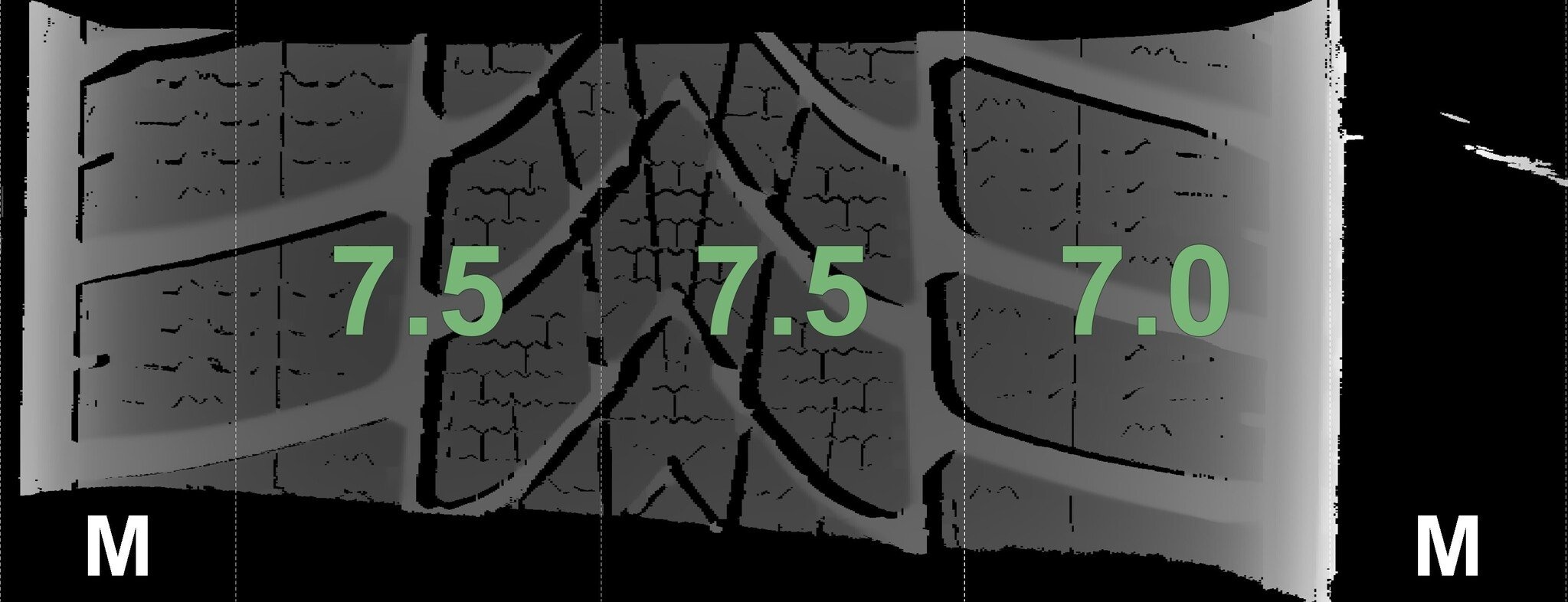 | Conditie | Profieldiepte | DOT | Links Achter | Gebruikt | 7.5 mm | 2223 |