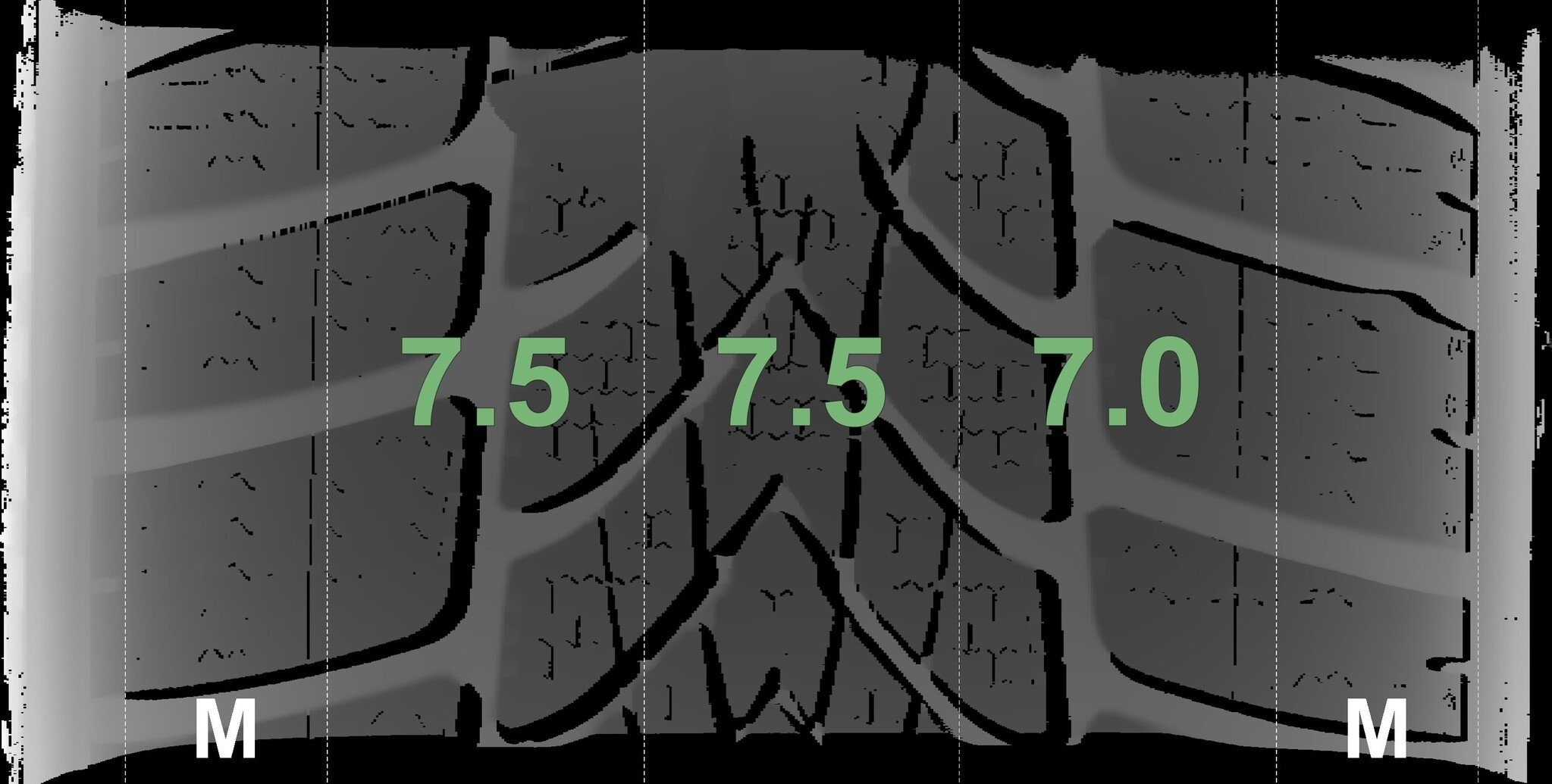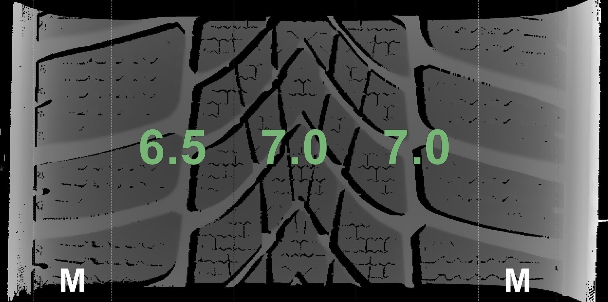De gemeten profieldieptes en de details van de velgen zijn hierboven weergegeven.