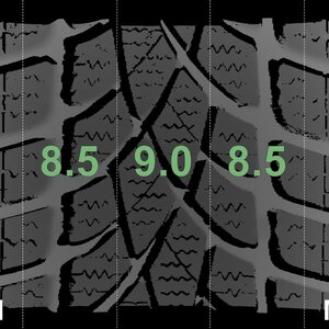 De gemeten profieldieptes en de details van de velgen zijn hierboven weergegeven.