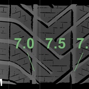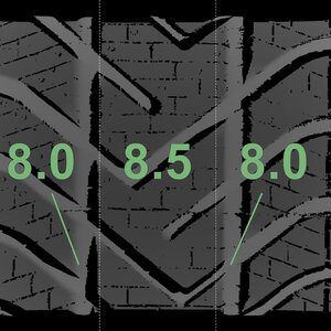 De gemeten profieldieptes en de details van de velgen zijn hierboven weergegeven.