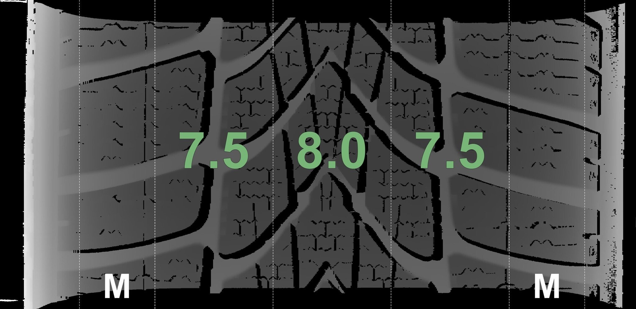 Conditie | Profieldiepte | DOT | Links Achter | Demo nopjes nog zichtbaar | 7.7 mm | 3223 |