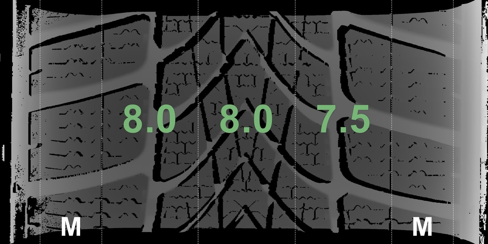 De gemeten profieldieptes en de details van de velgen zijn hierboven weergegeven.