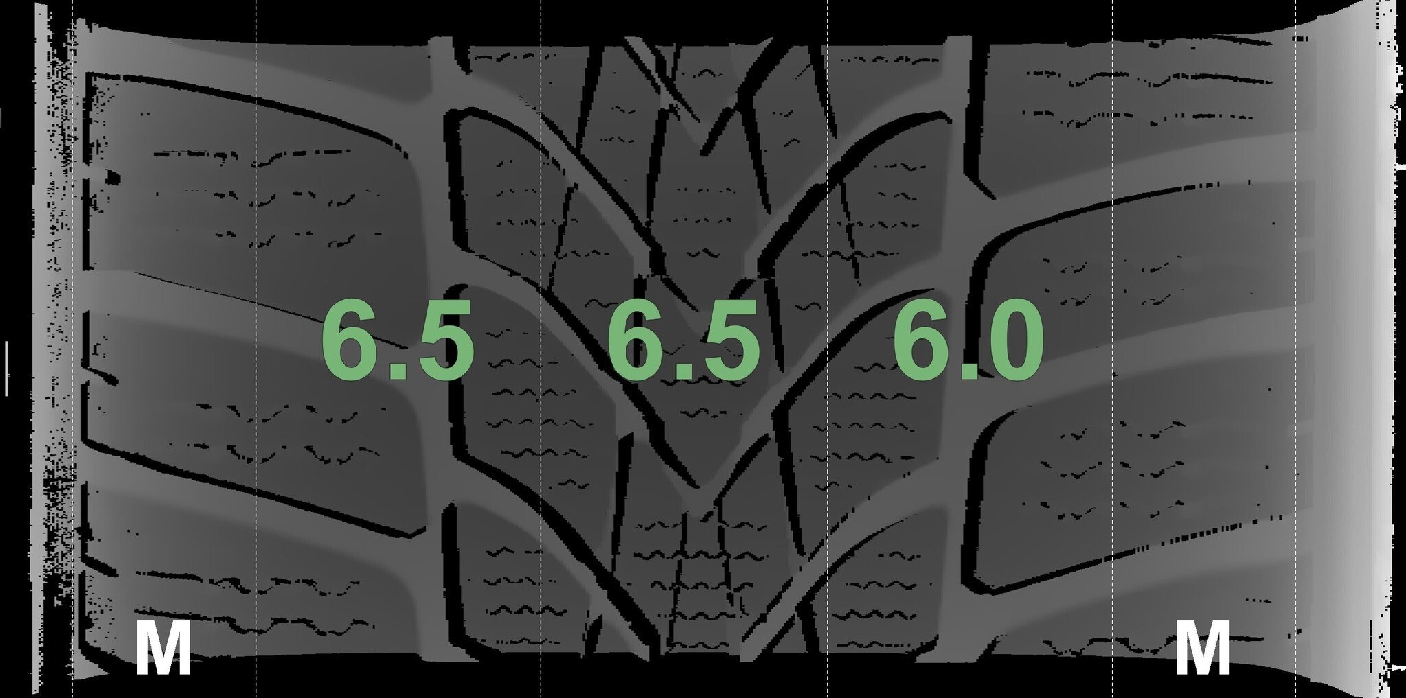 De gemeten profieldieptes en de details van de velgen zijn hierboven weergegeven.