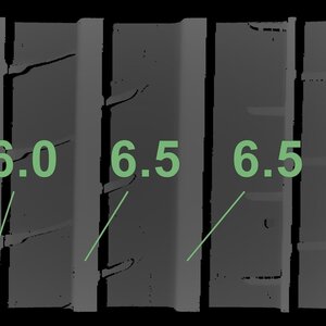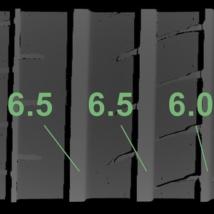 De gemeten profieldieptes en de details van de velgen zijn hierboven weergegeven.