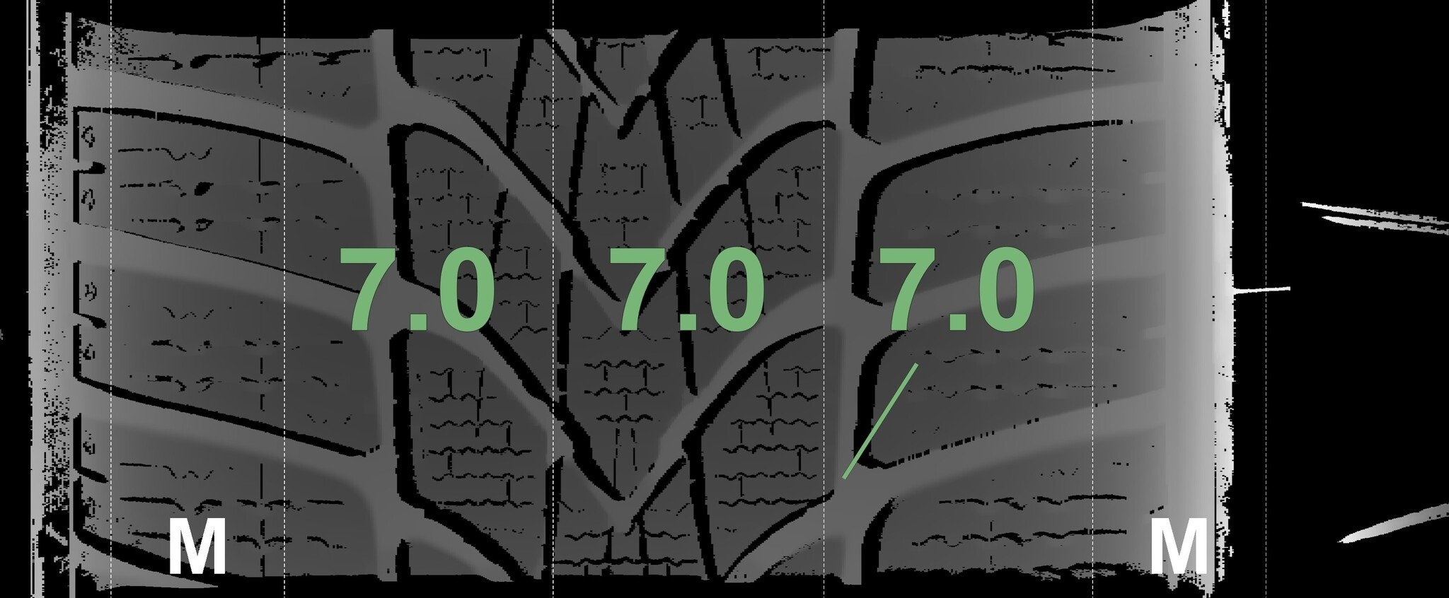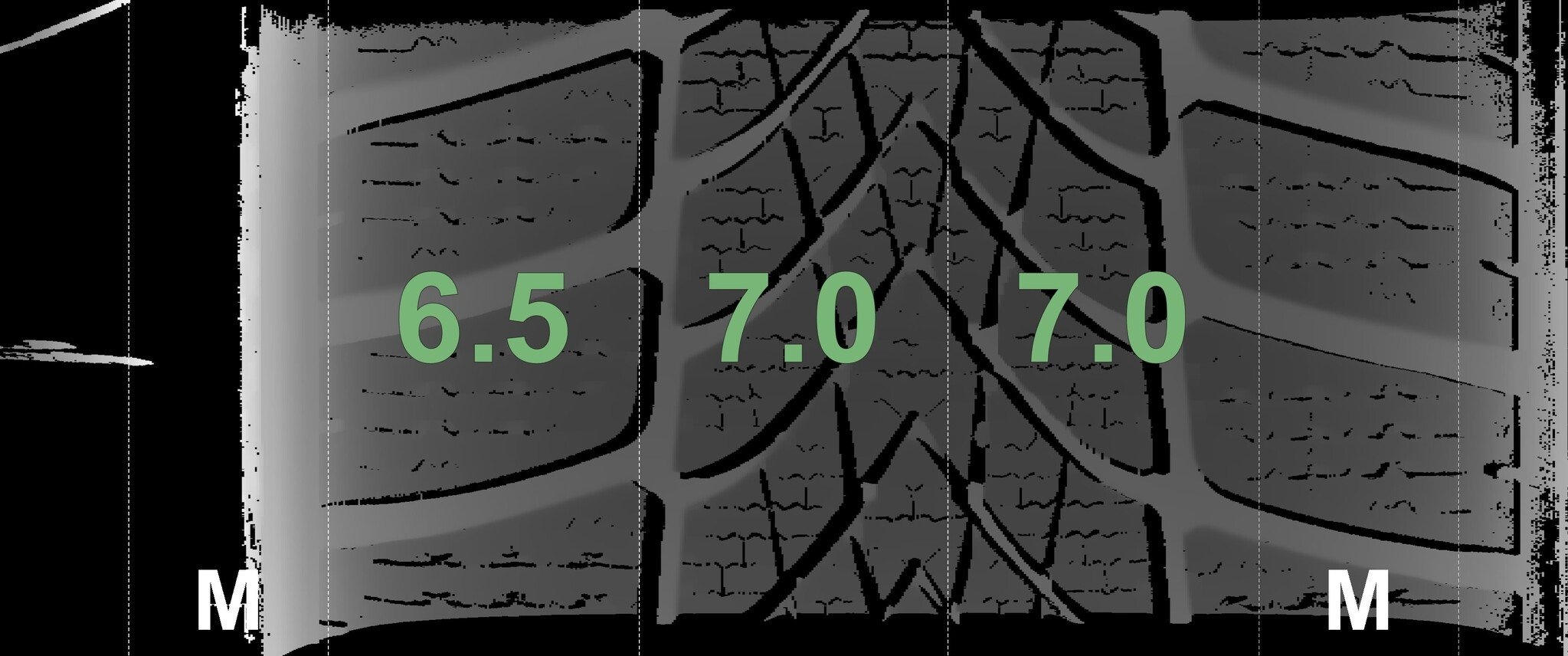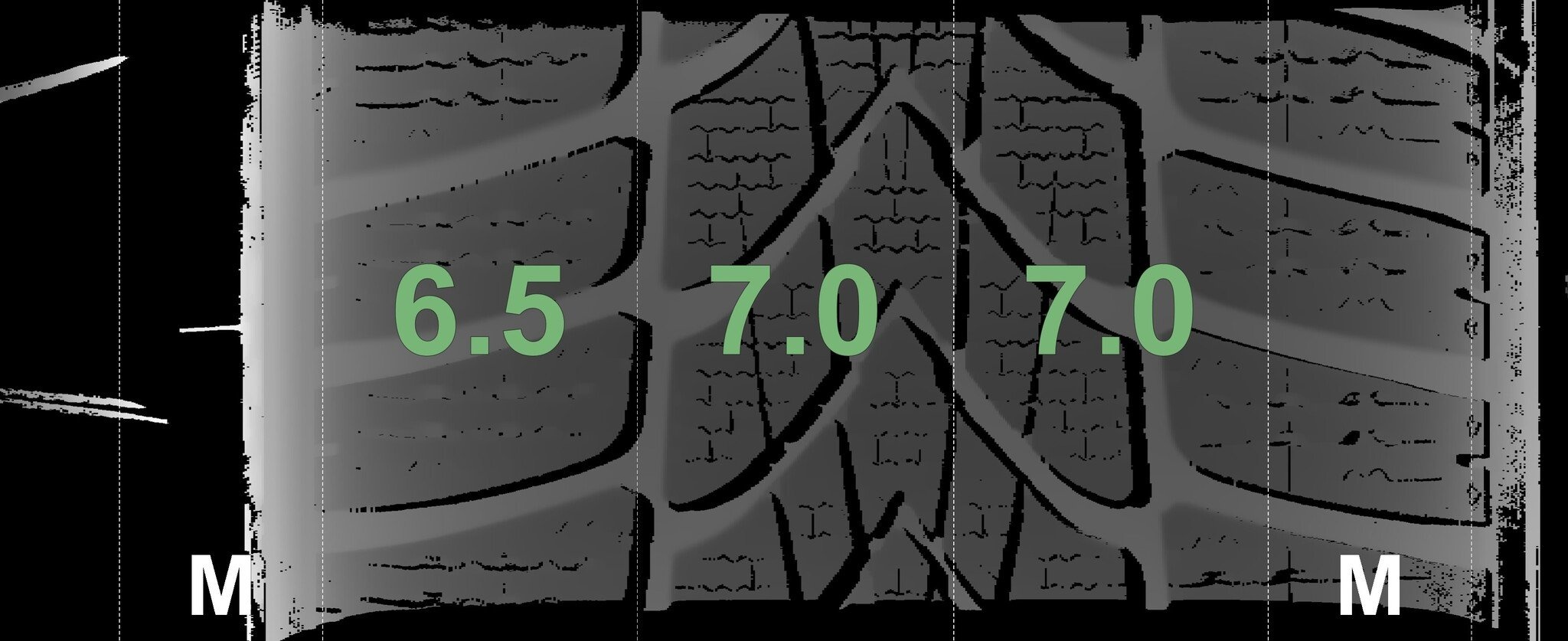 De gemeten profieldieptes en de details van de velgen zijn hierboven weergegeven.