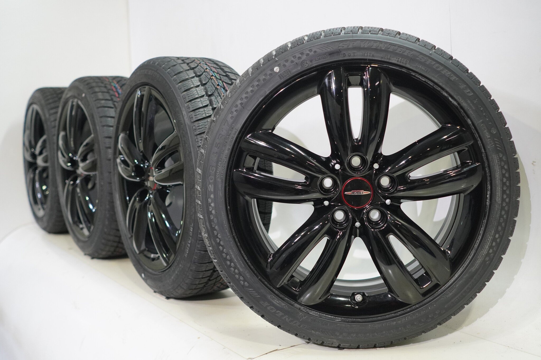 Originele wielset van Mini, styling JCW501, 17 inch velgen met Dunlop SPWintersport 4D Runflat Winterbanden. Deze velgen zijn originele velgen van het merk Mini en geschikt voor: Mini Cooper / S / One / Cabrio F55 F56 F57.