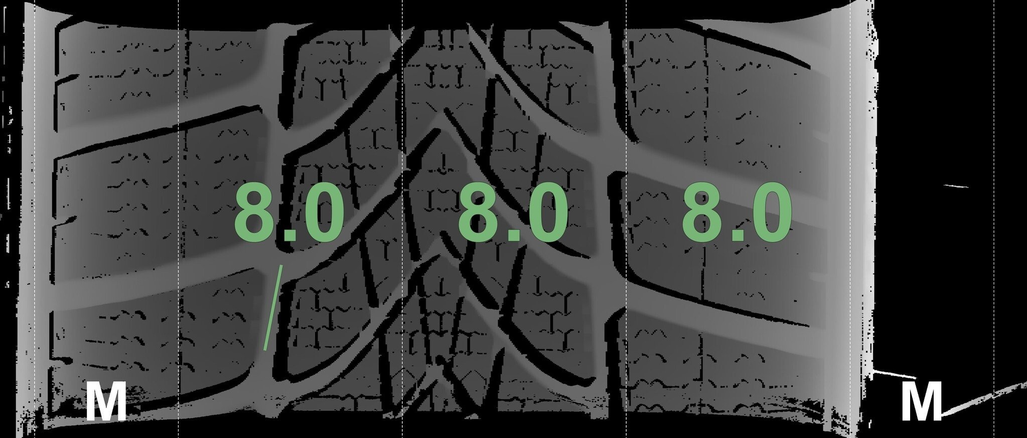 De gemeten profieldieptes en de details van de velgen zijn hierboven weergegeven.
