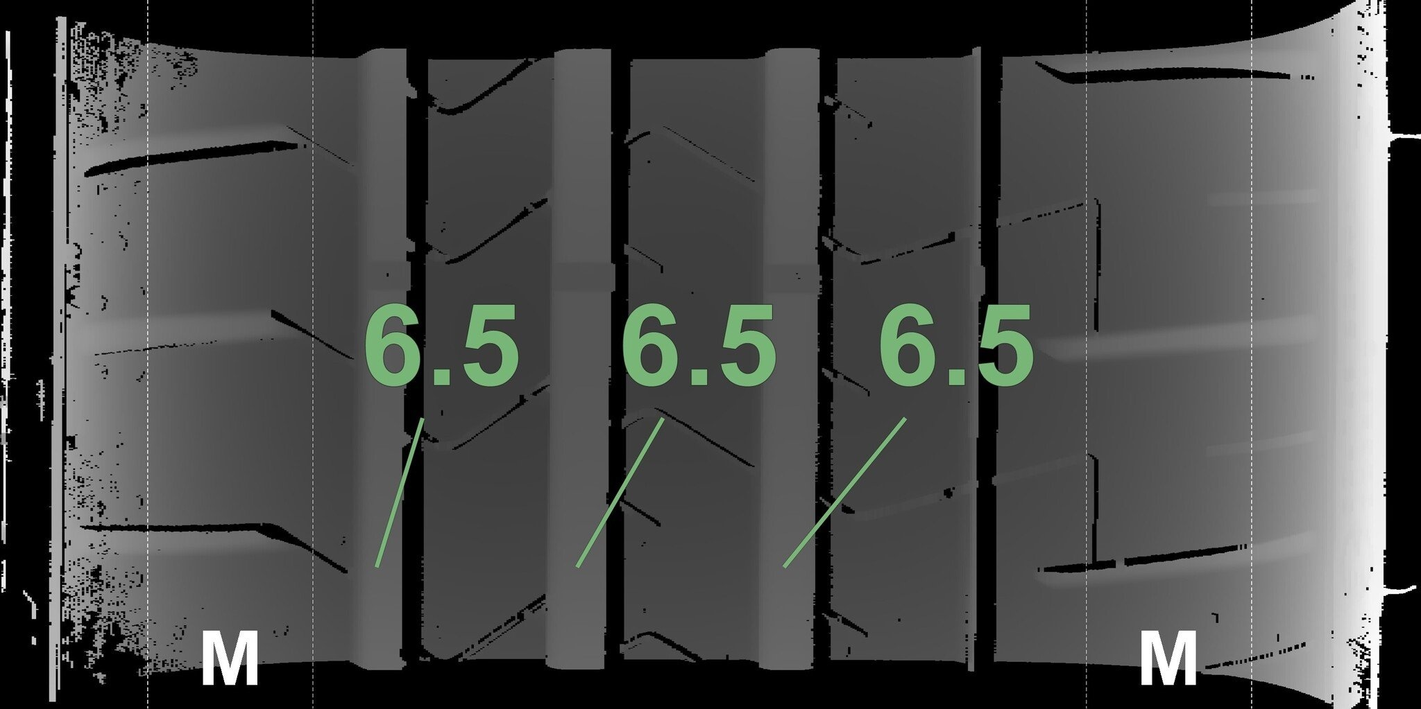 De gemeten profieldieptes en de details van de velgen zijn hierboven weergegeven.