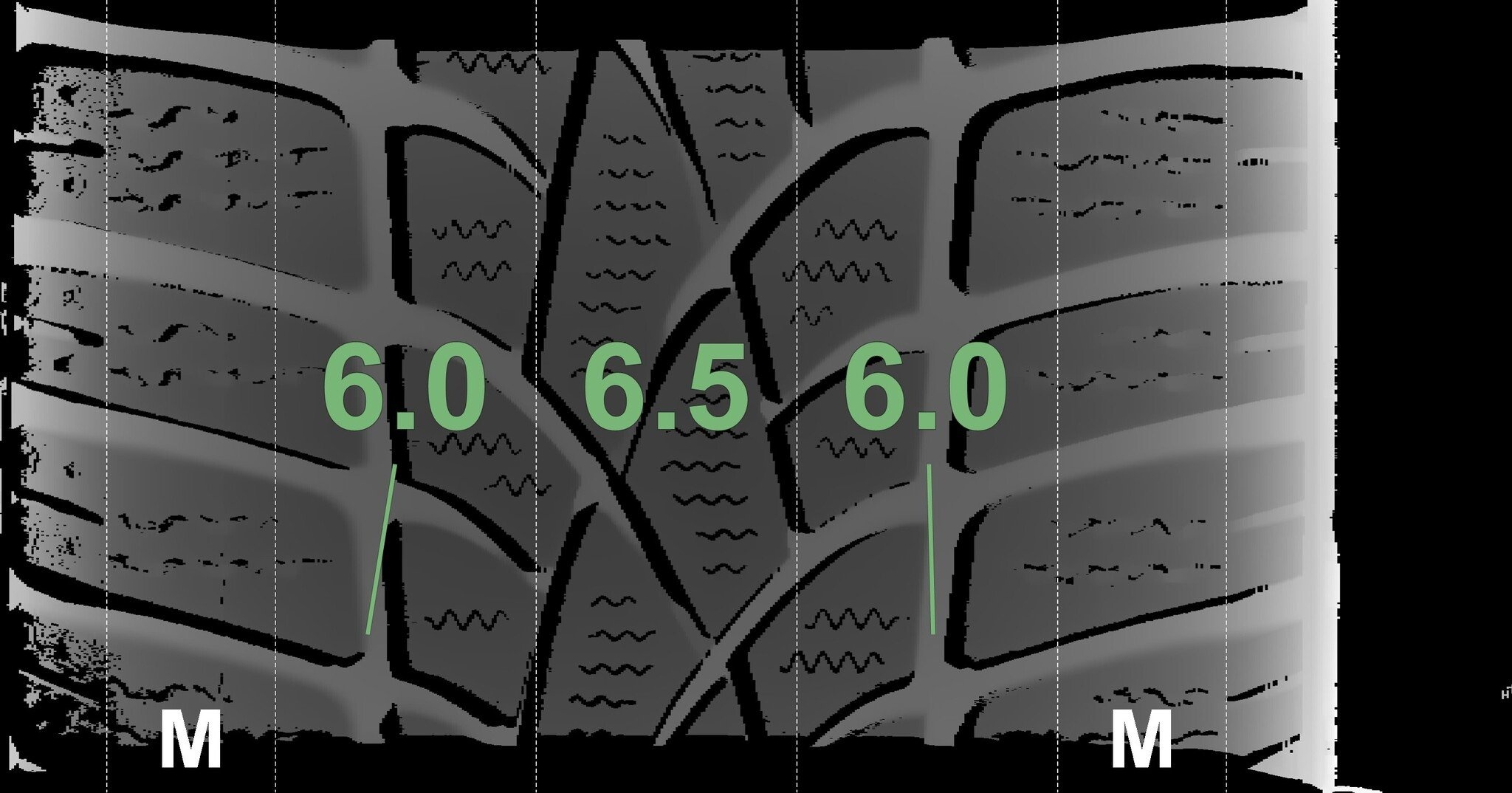 De gemeten profieldieptes en de details van de velgen zijn hierboven weergegeven.