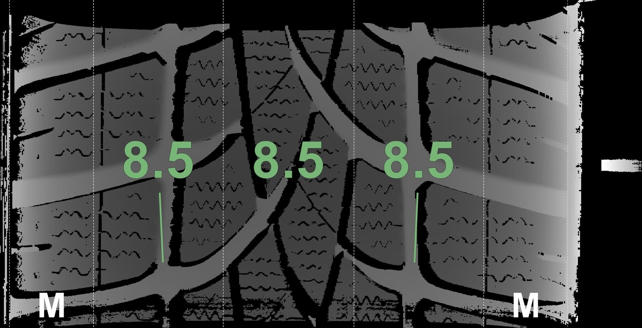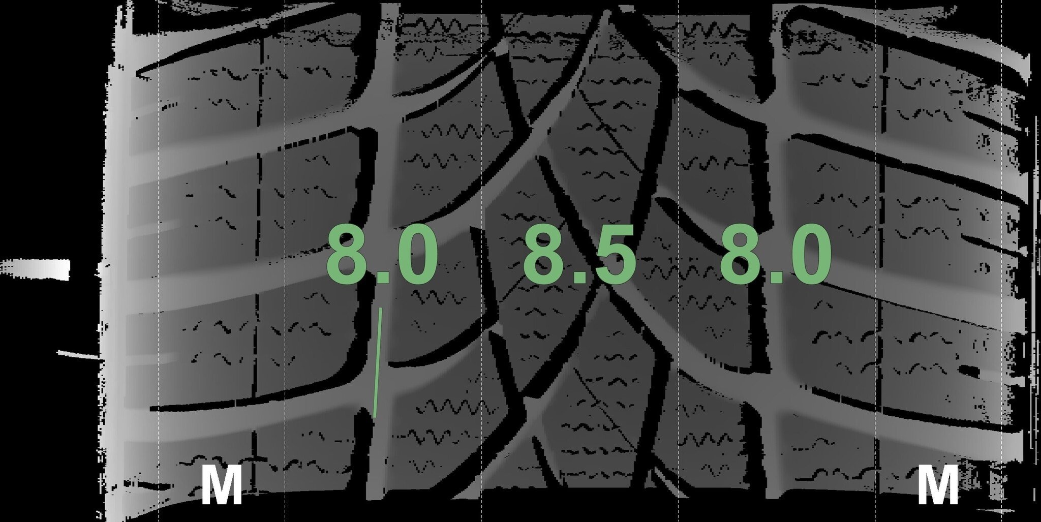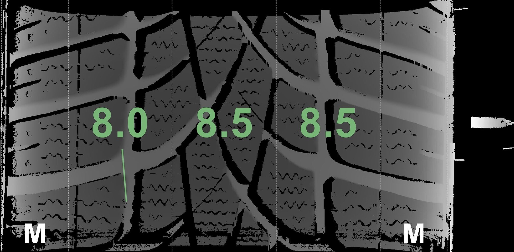 De gemeten profieldieptes en de details van de velgen zijn hierboven weergegeven.