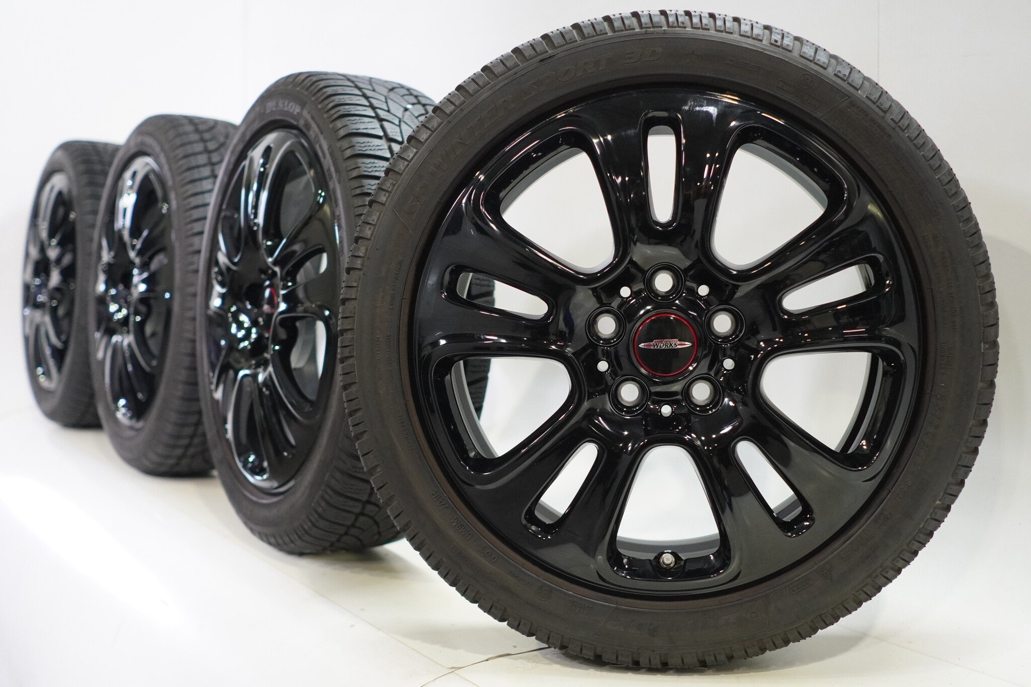 Originele wielset van Mini, styling JCW510, 17 inch velgen met Dunlop SPWintersport 3D Runflat Winterbanden. Deze velgen zijn originele velgen van het merk Mini en geschikt voor: Mini Cooper / S / One / Cabrio F55 F56 F57.