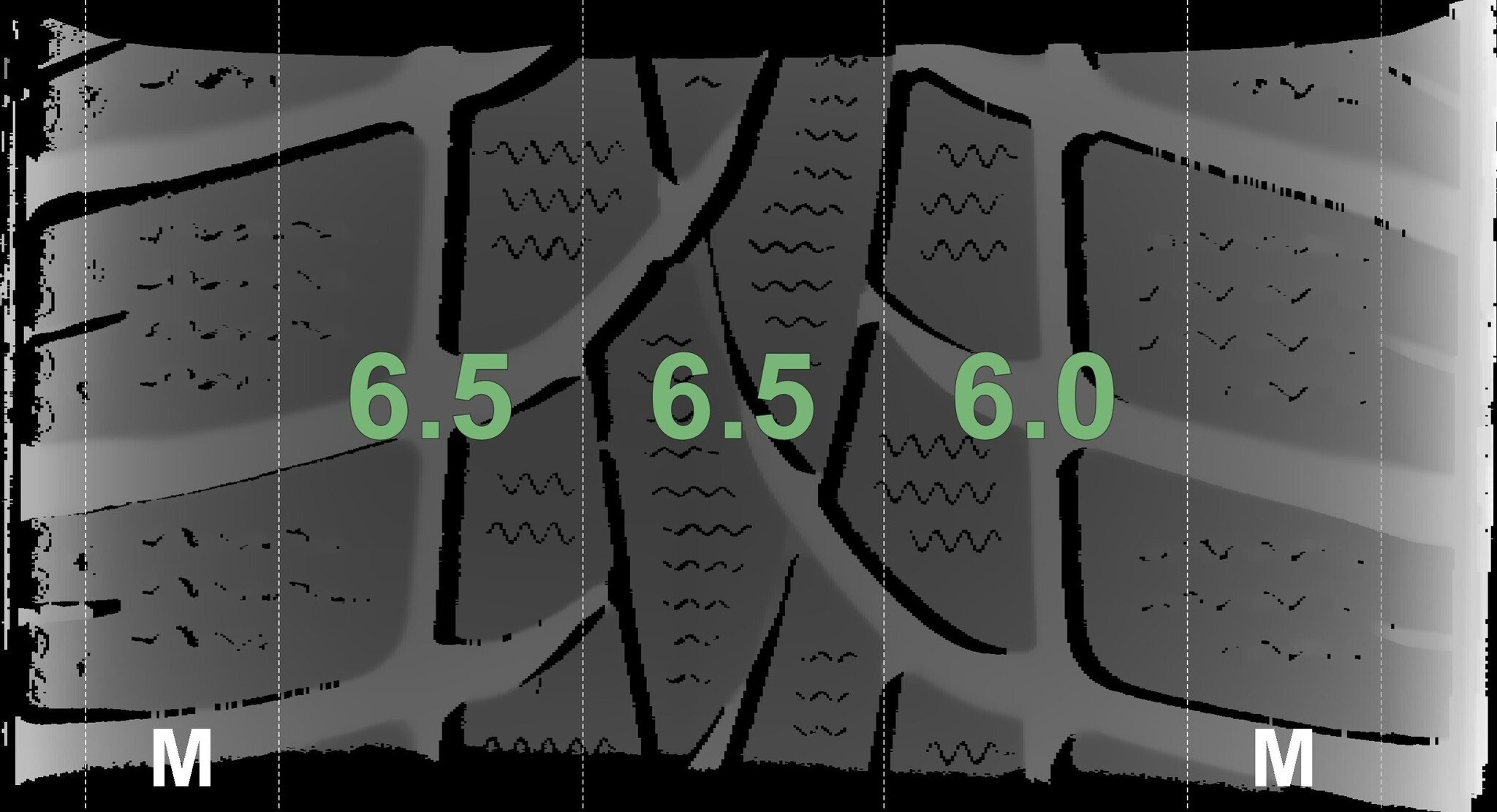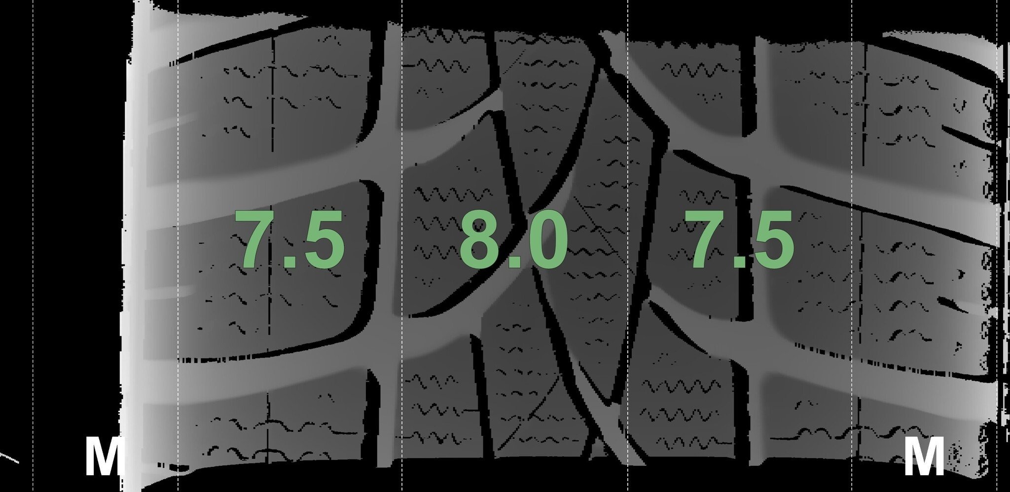 De gemeten profieldieptes en de details van de velgen zijn hierboven weergegeven.