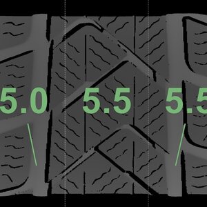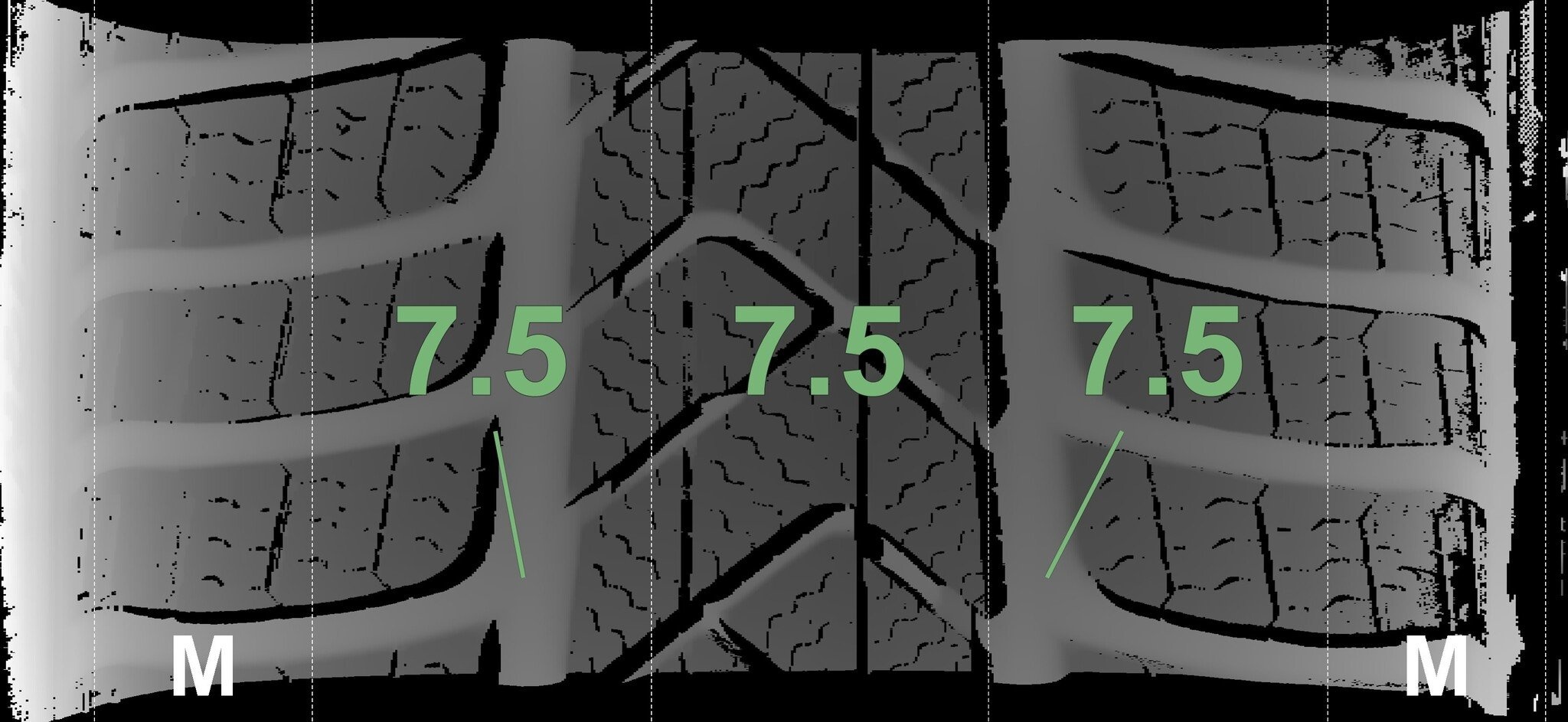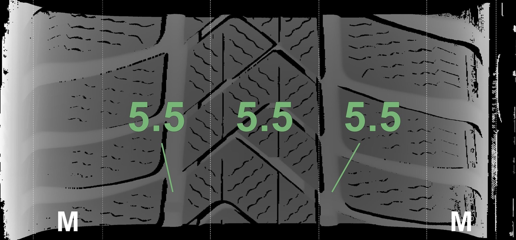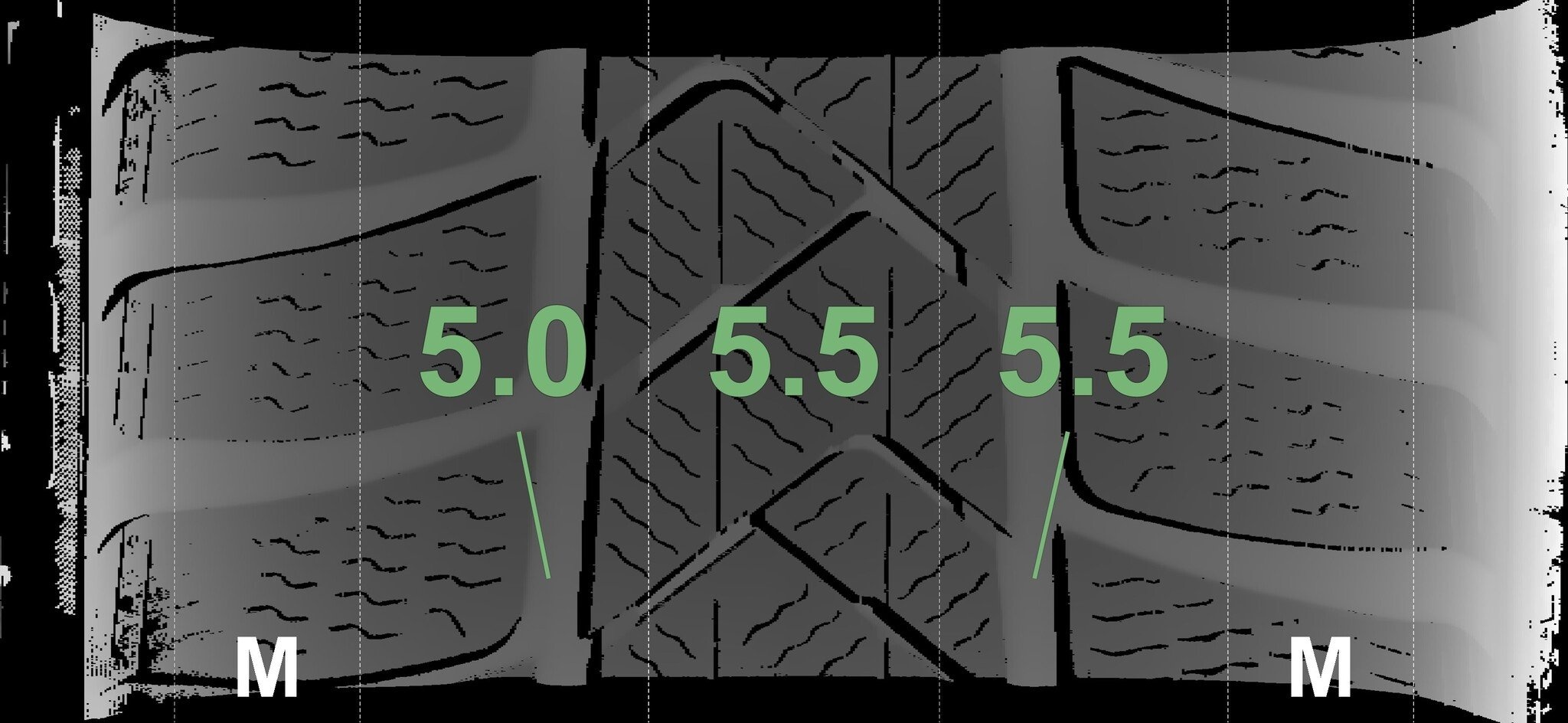 De gemeten profieldieptes en de details van de velgen zijn hierboven weergegeven.
