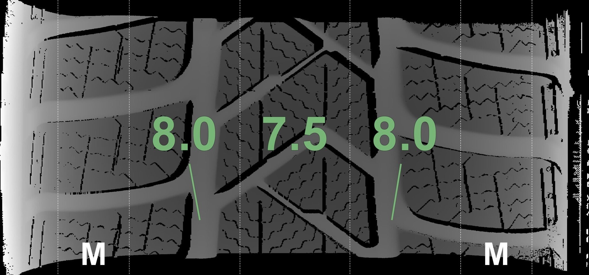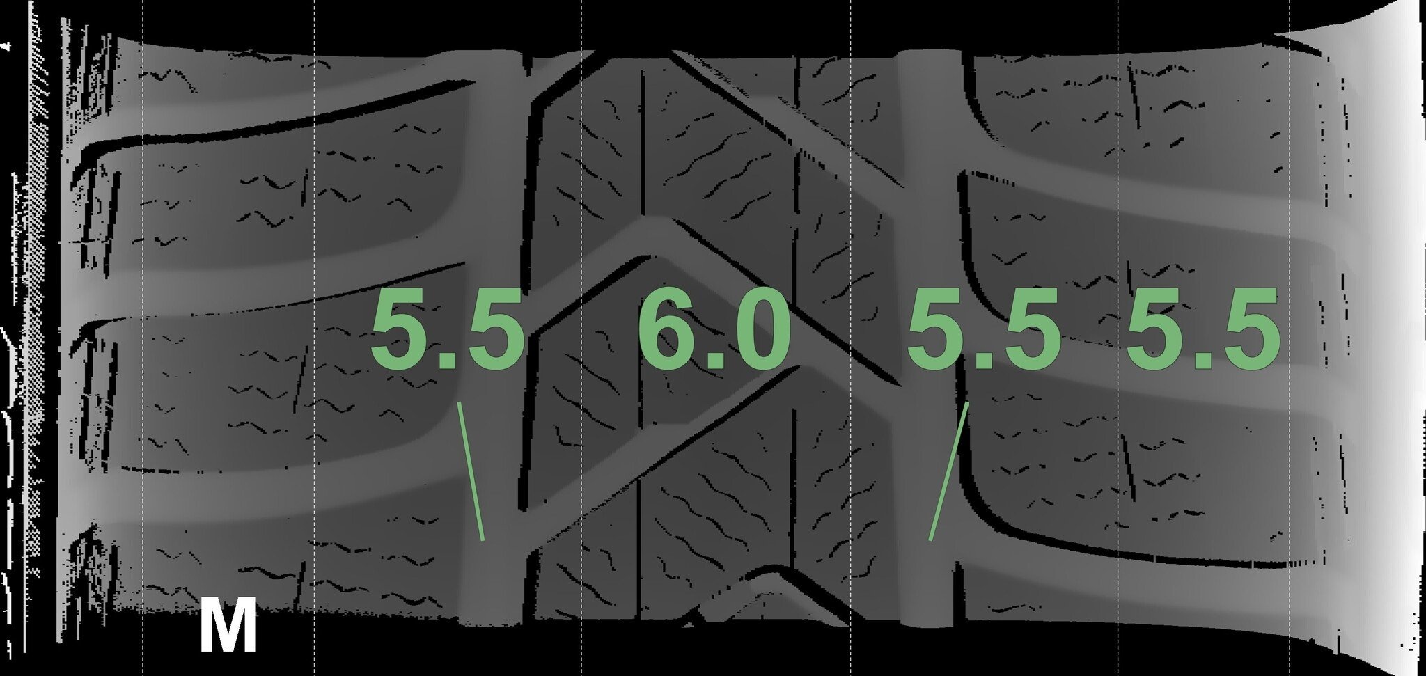 De gemeten profieldieptes en de details van de velgen zijn hierboven weergegeven.