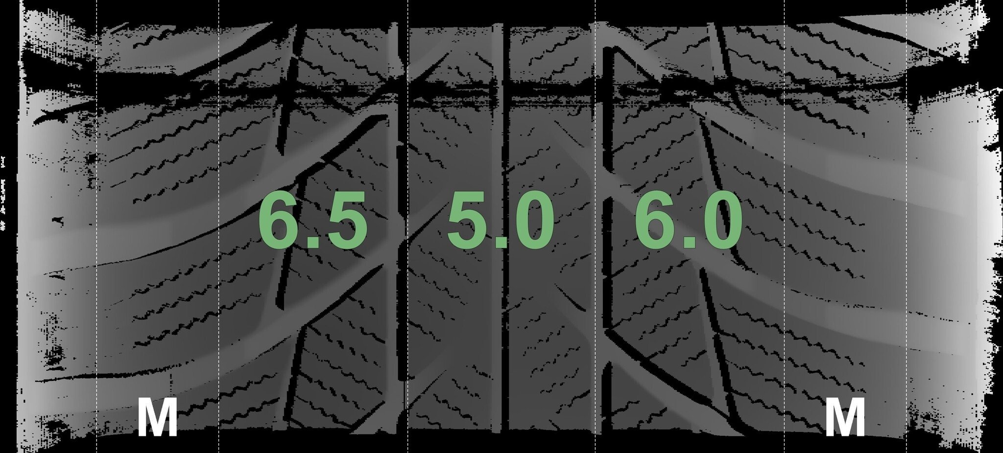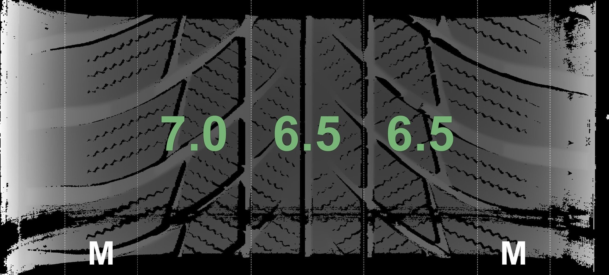 De gemeten profieldieptes en de details van de velgen zijn hierboven weergegeven.