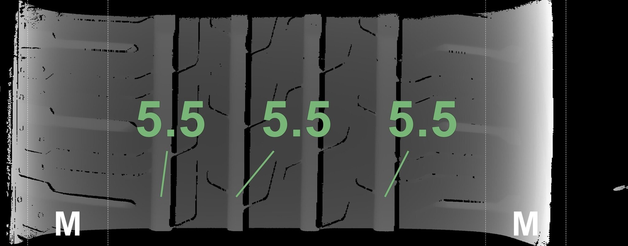 De gemeten profieldieptes en de details van de velgen zijn hierboven weergegeven.