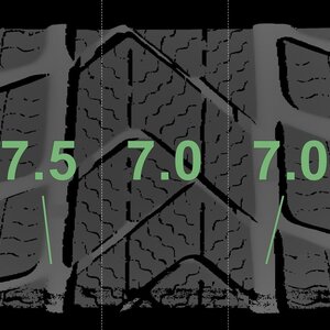 De gemeten profieldieptes en de details van de velgen zijn hierboven weergegeven.