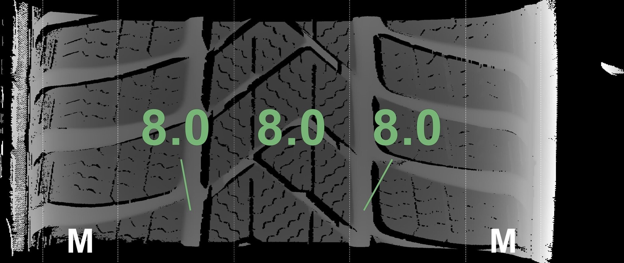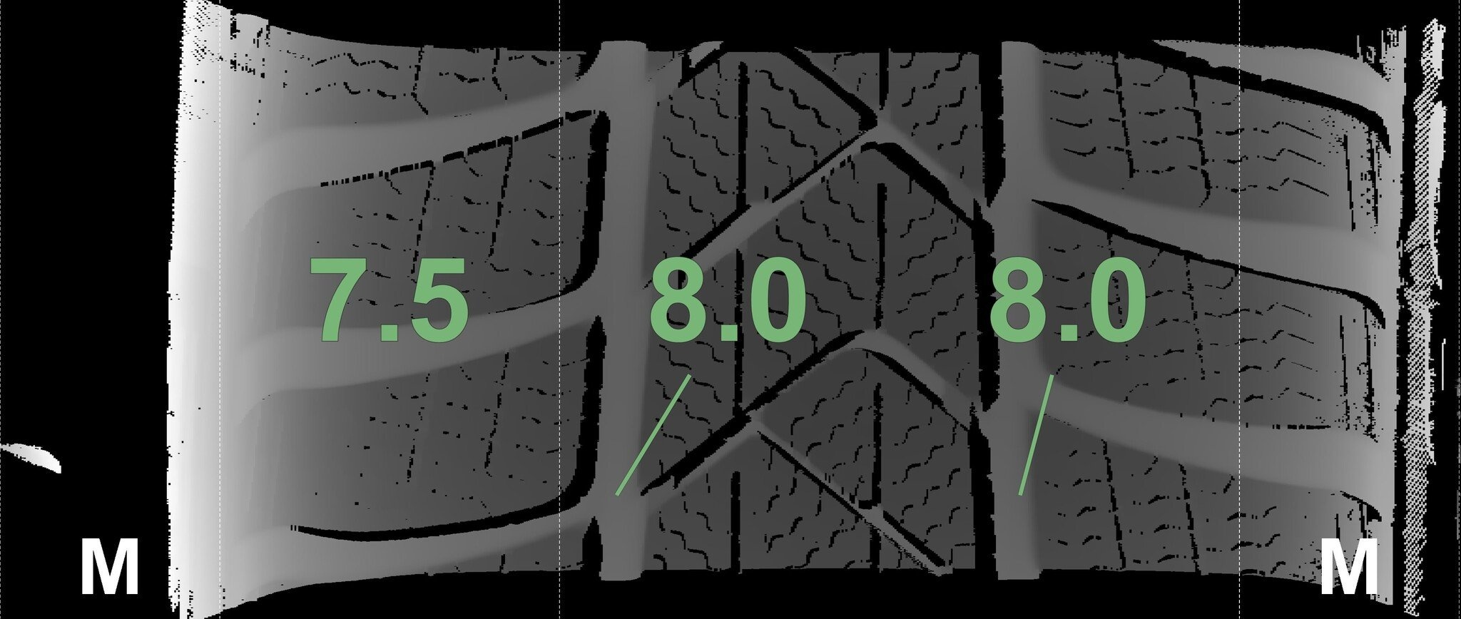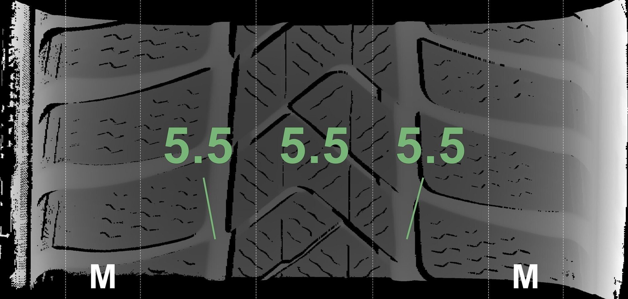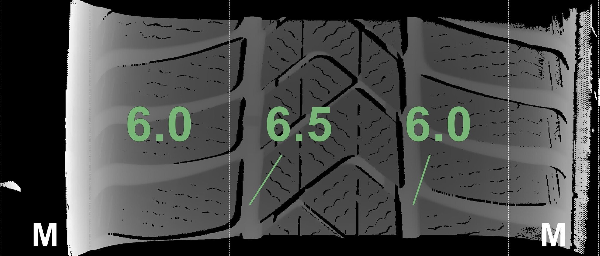 De gemeten profieldieptes en de details van de velgen zijn hierboven weergegeven.