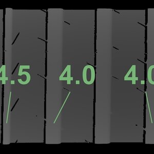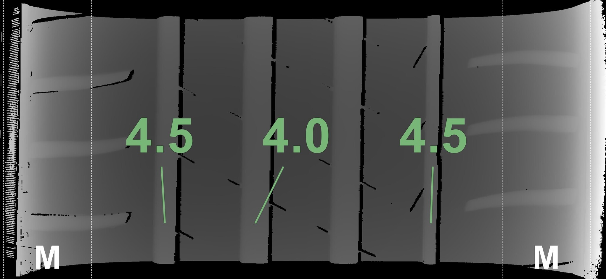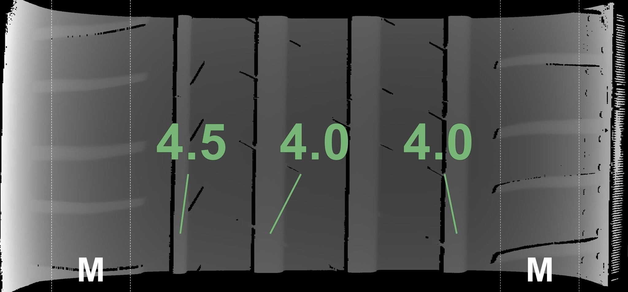 De gemeten profieldieptes en de details van de velgen zijn hierboven weergegeven.