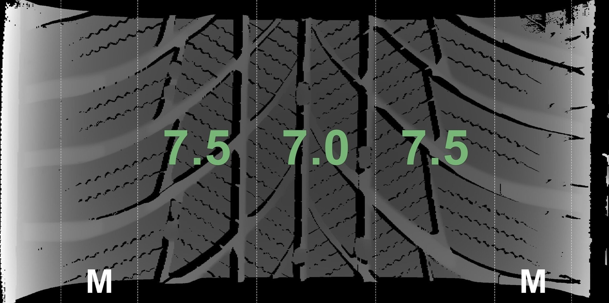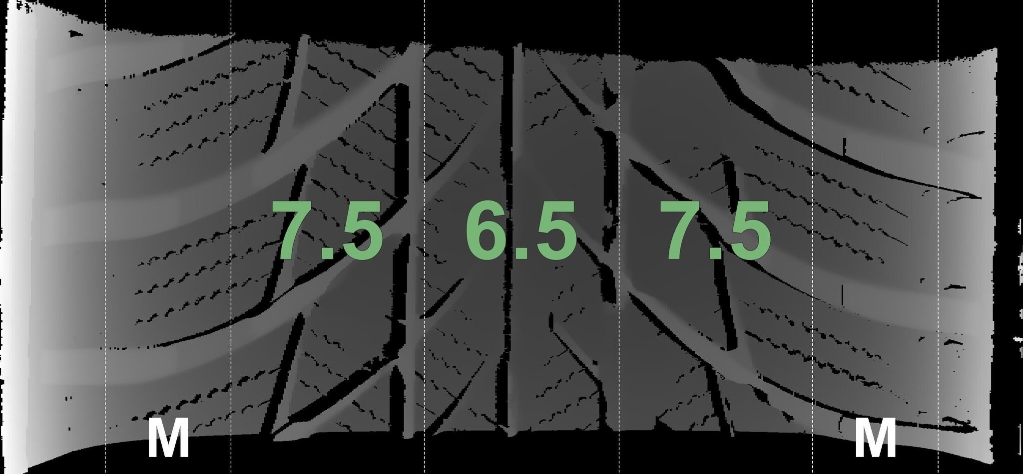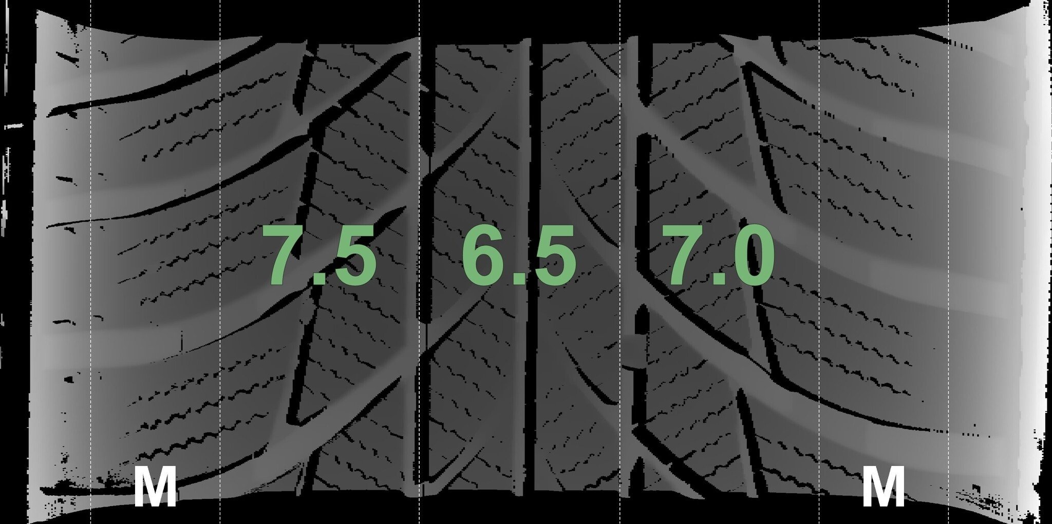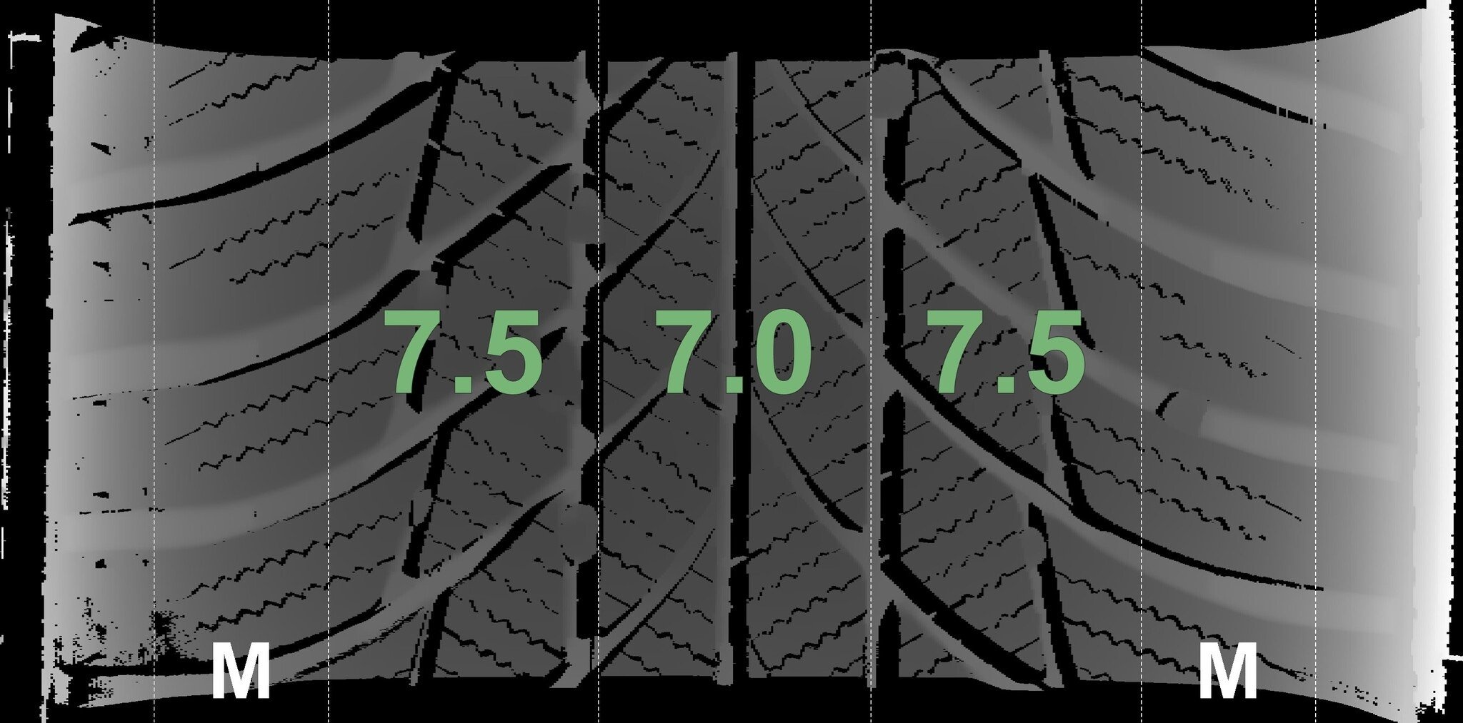 De gemeten profieldieptes en de details van de velgen zijn hierboven weergegeven.