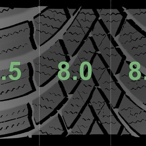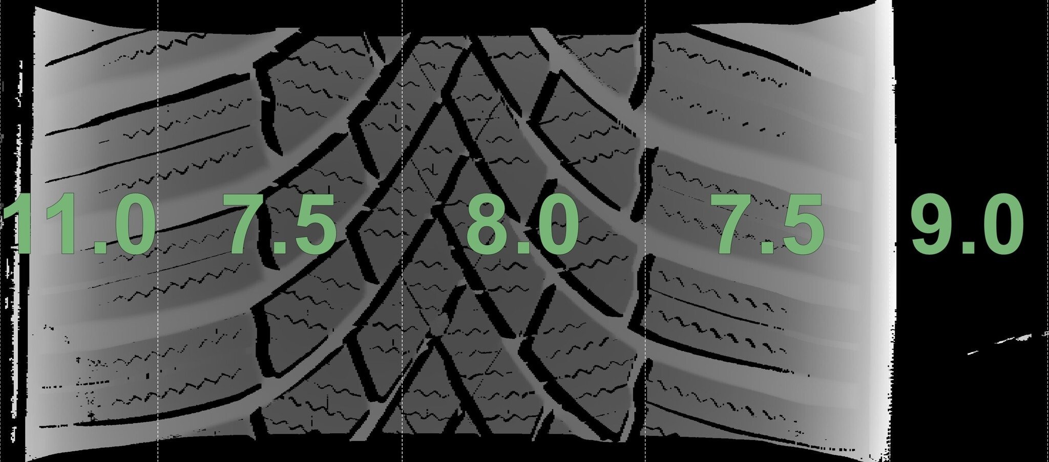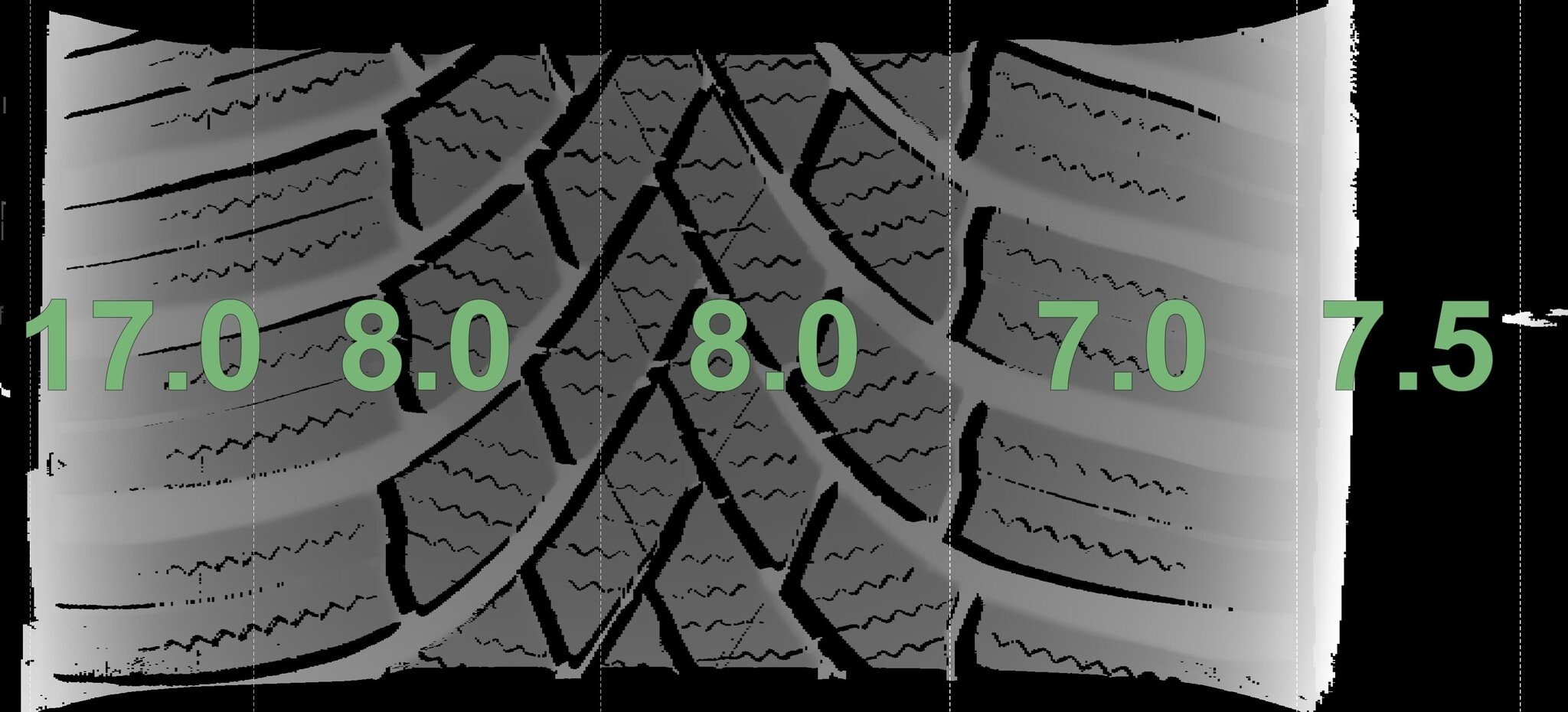 De gemeten profieldieptes en de details van de velgen zijn hierboven weergegeven.