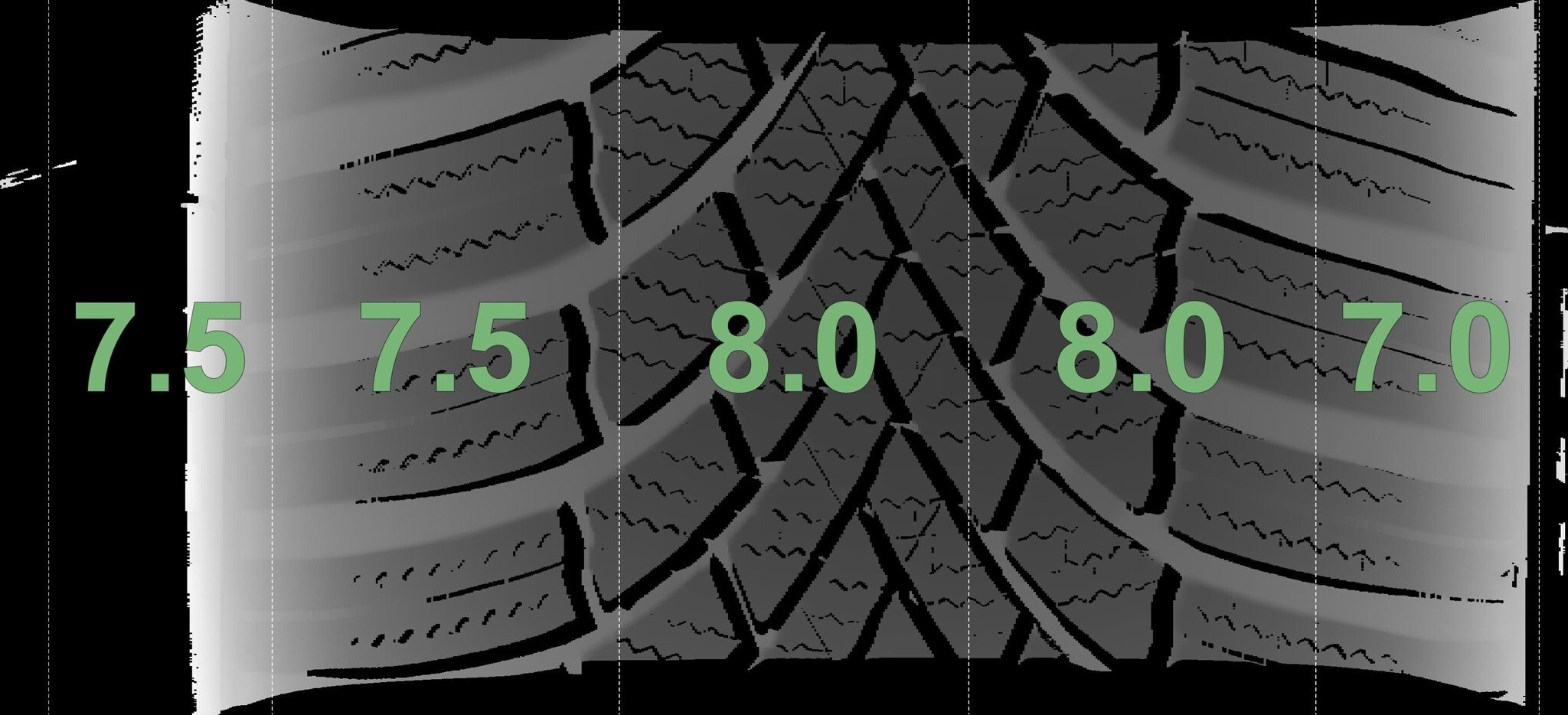| Conditie | Profieldiepte | DOT | Links Voor | Gebruikt | 7.8 mm | 2122 |