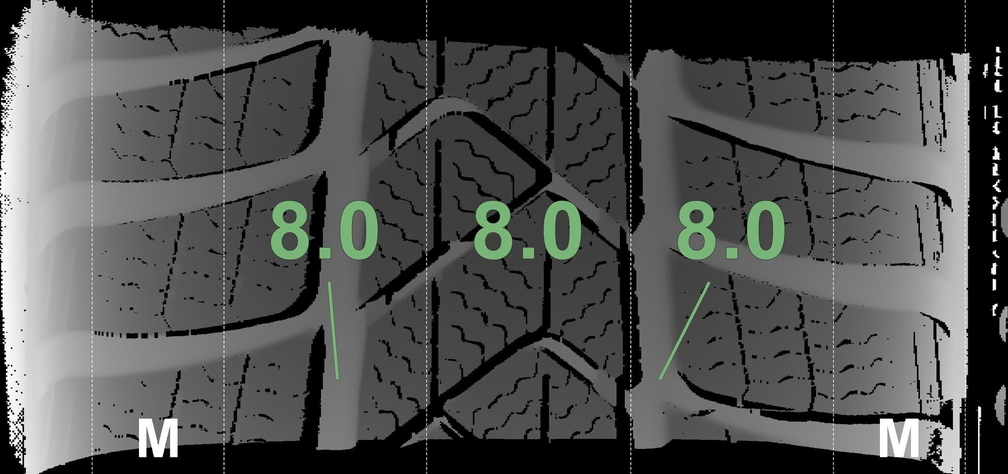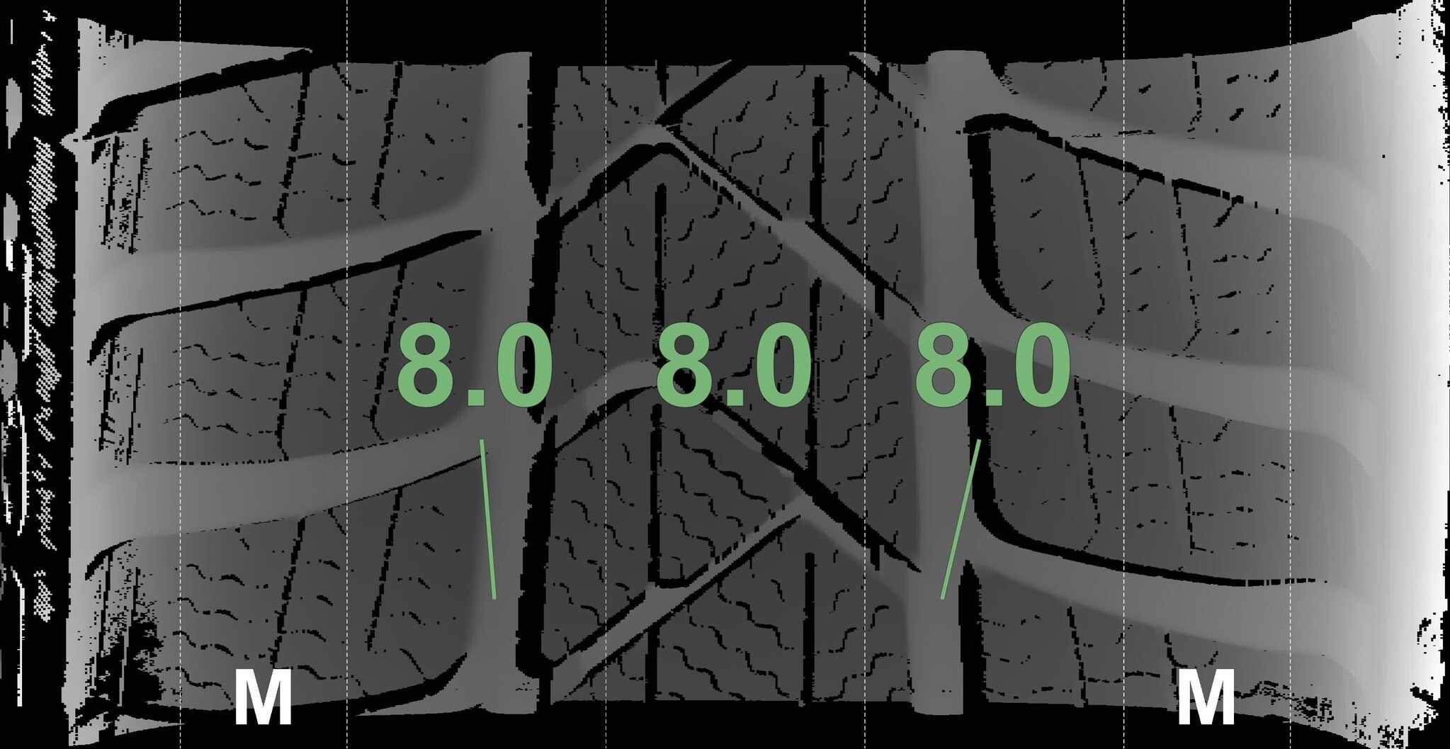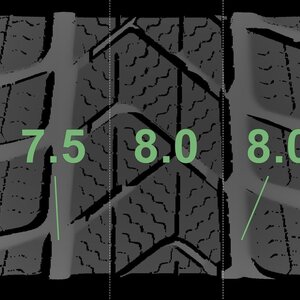 De gemeten profieldieptes en de details van de velgen zijn hierboven weergegeven.