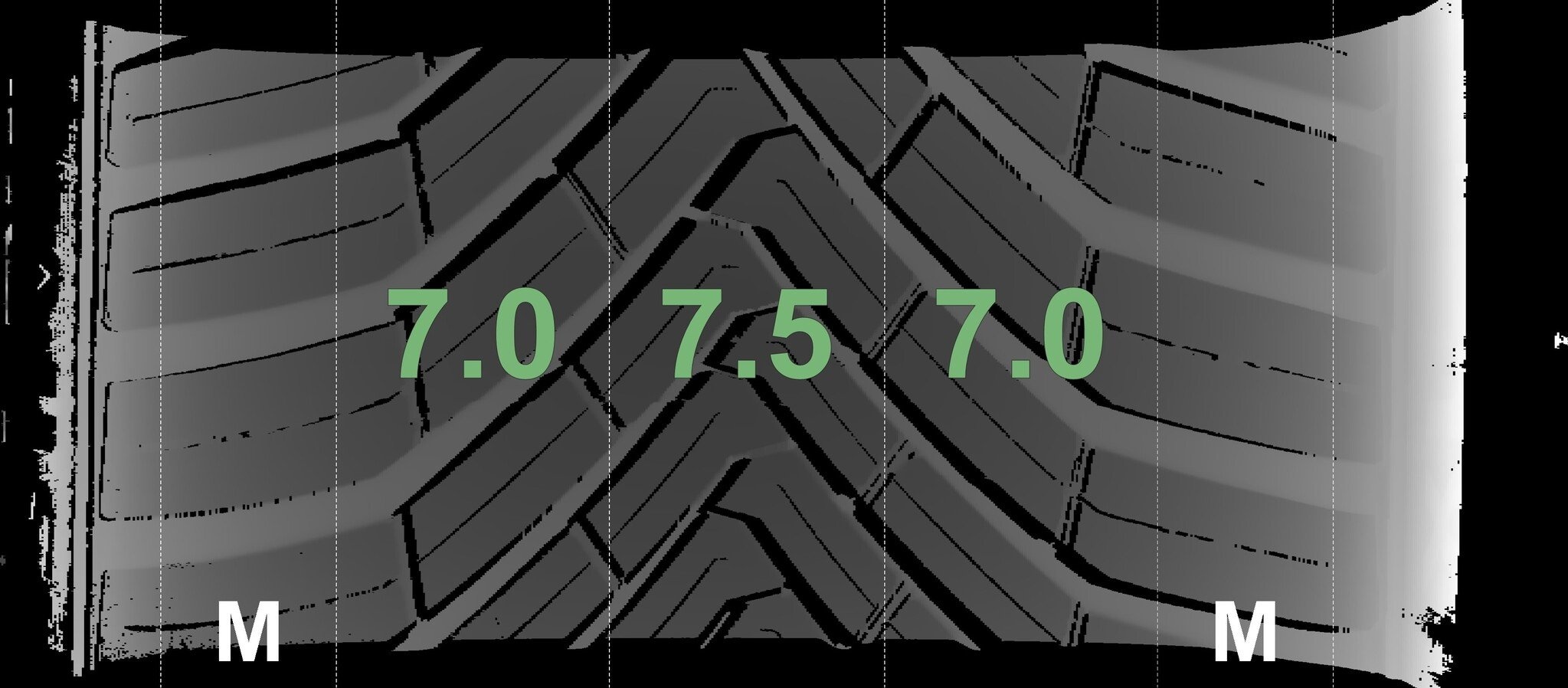 De gemeten profieldieptes en de details van de velgen zijn hierboven weergegeven.