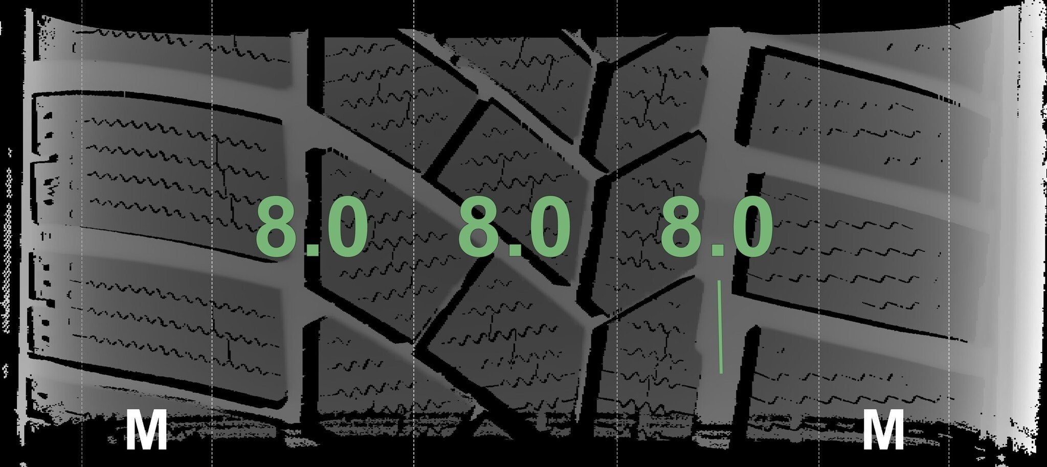 De gemeten profieldieptes en de details van de velgen zijn hierboven weergegeven.