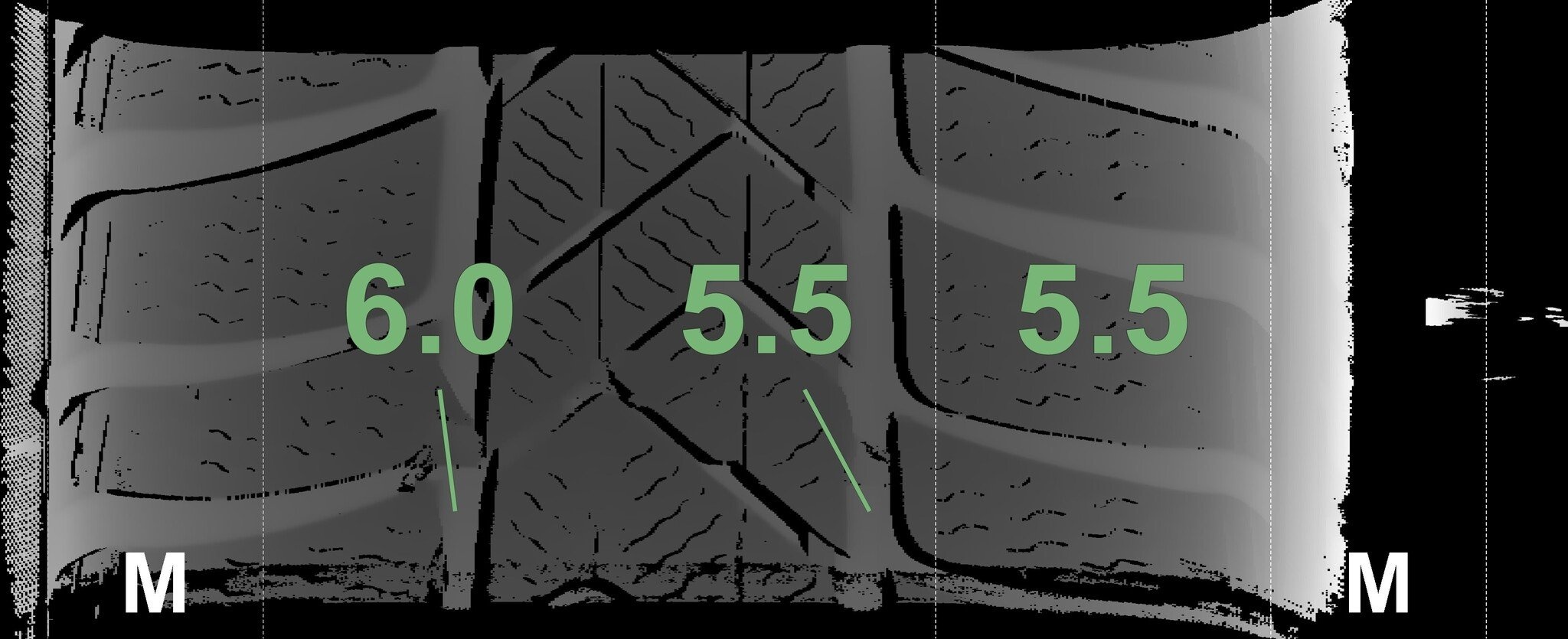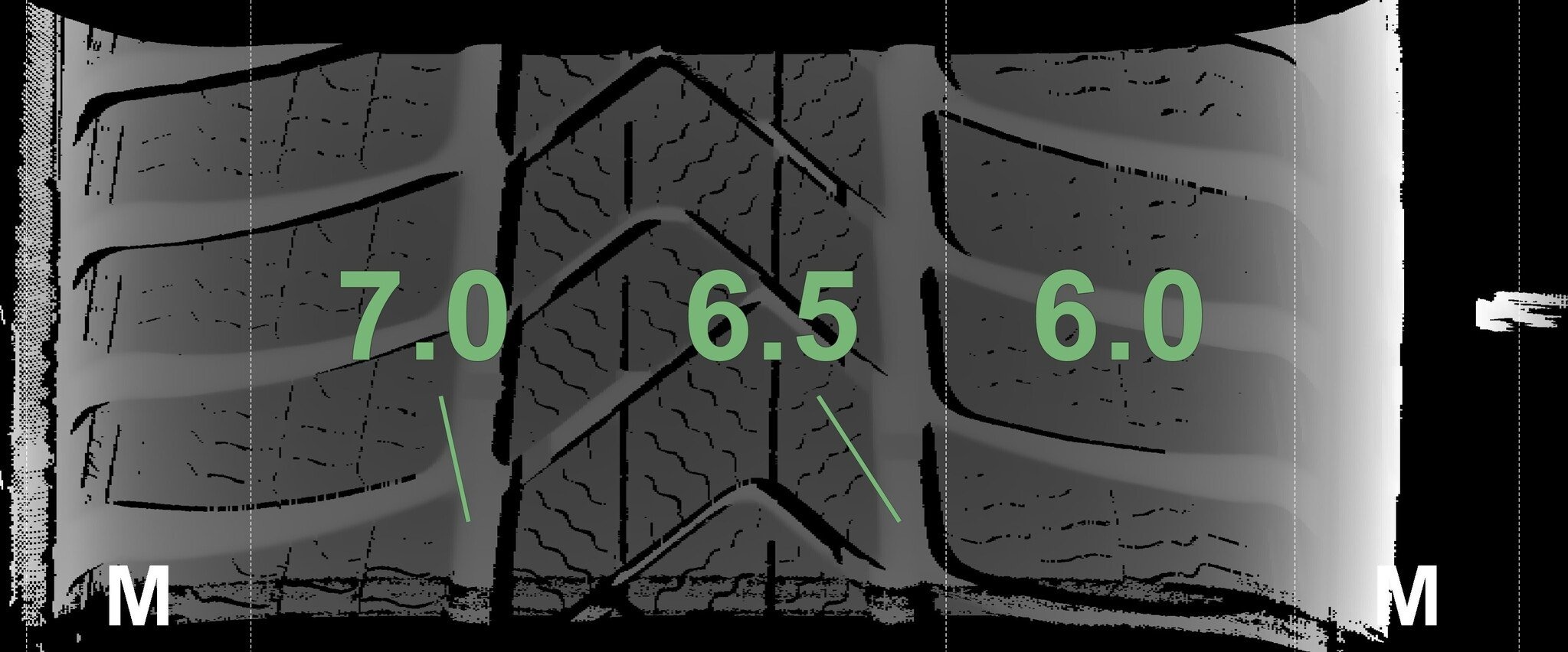 De gemeten profieldieptes en de details van de velgen zijn hierboven weergegeven.