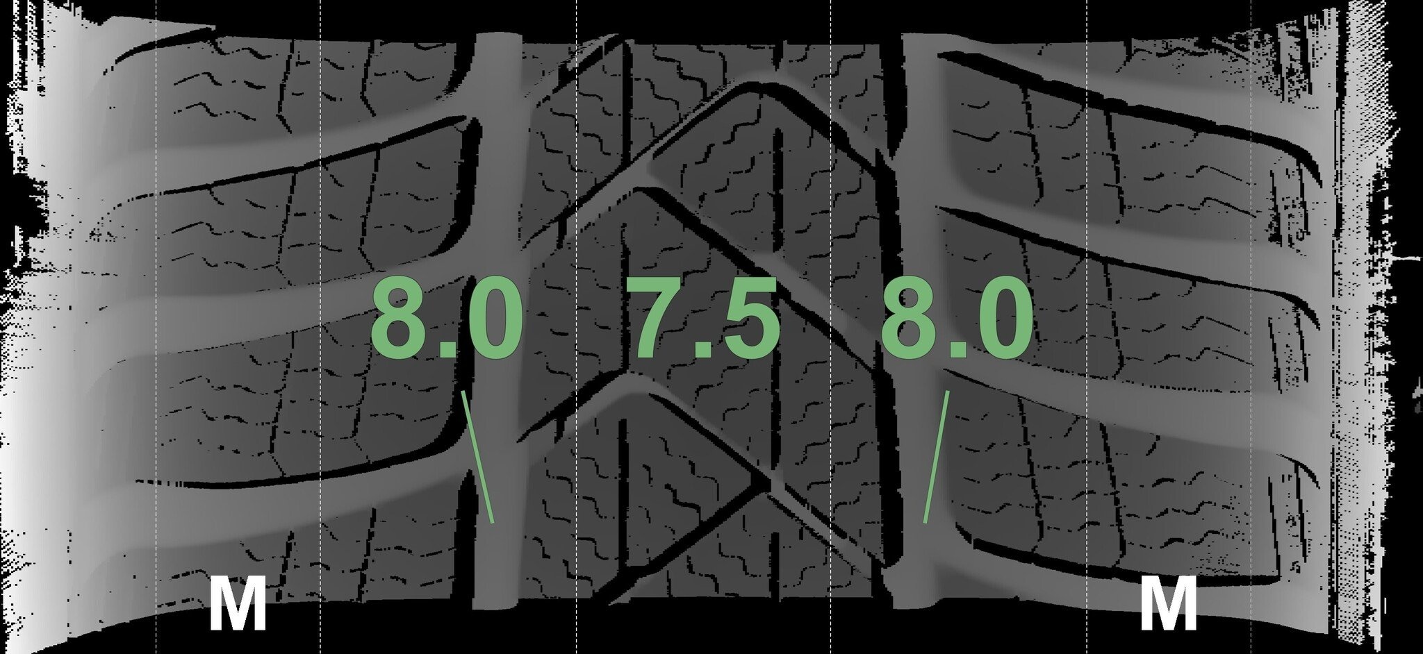 Conditie | Profieldiepte | DOT | Rechts Achter | Demo nopjes nog zichtbaar | 7.5 mm | 2321 |