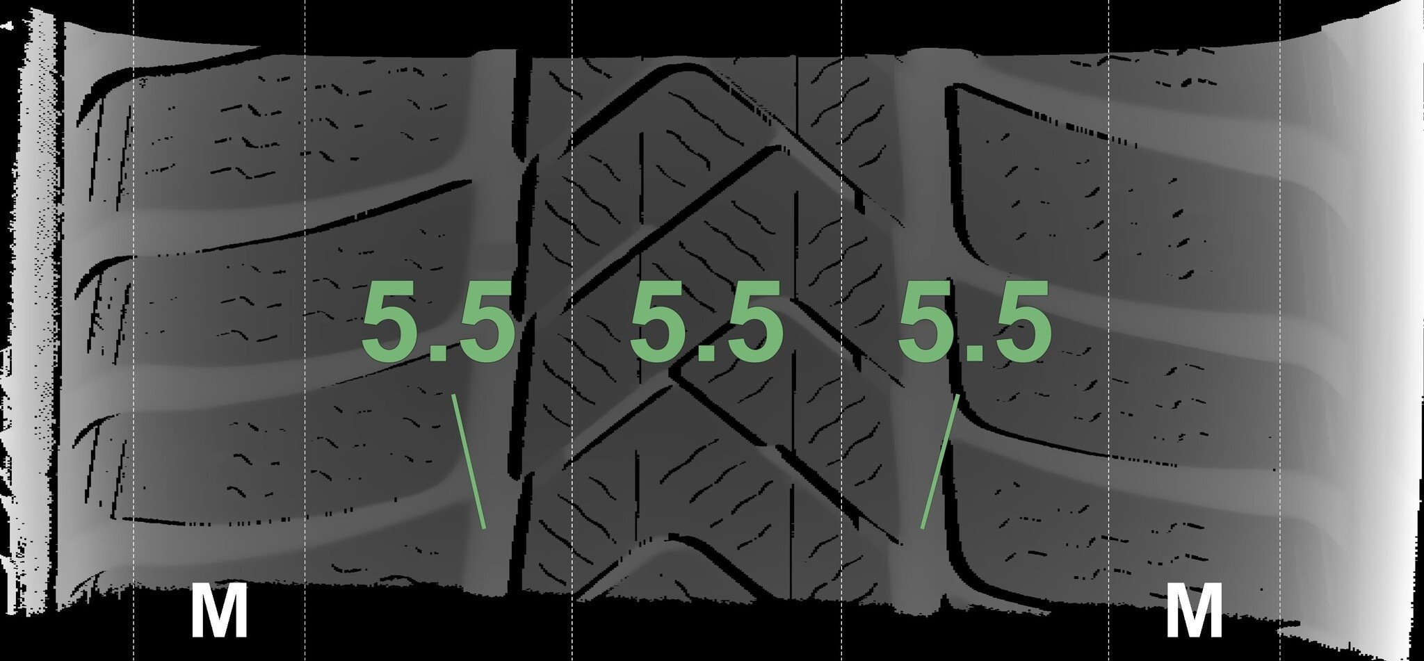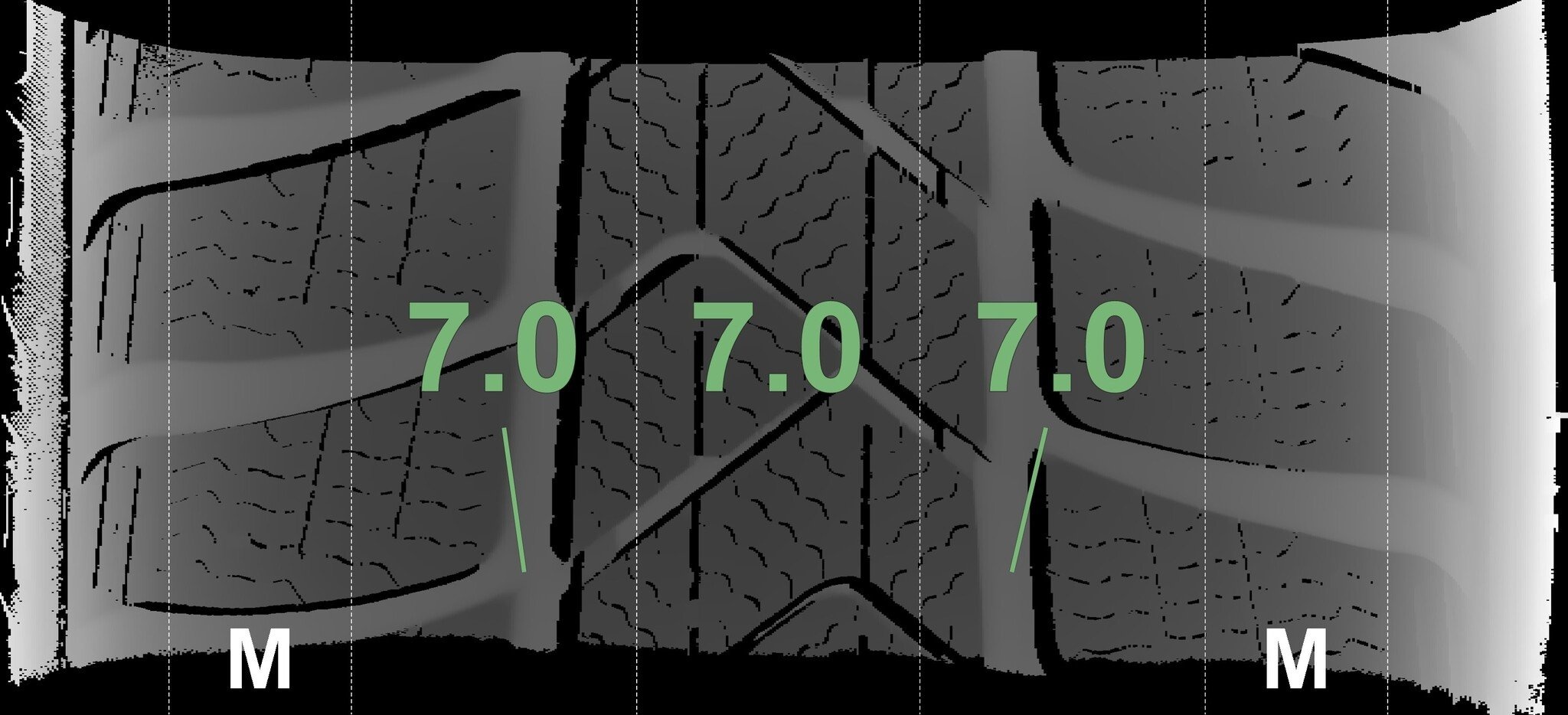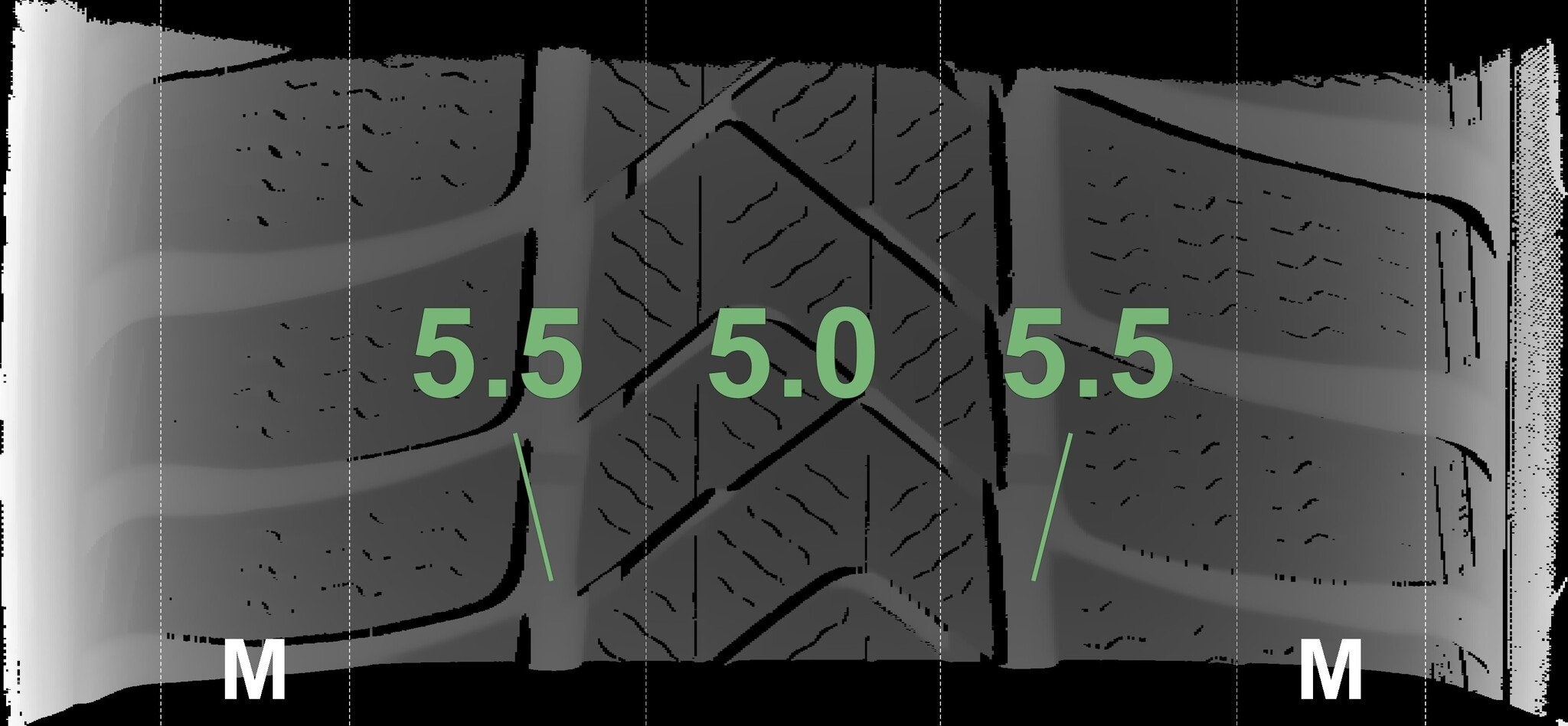 De gemeten profieldieptes en de details van de velgen zijn hierboven weergegeven.