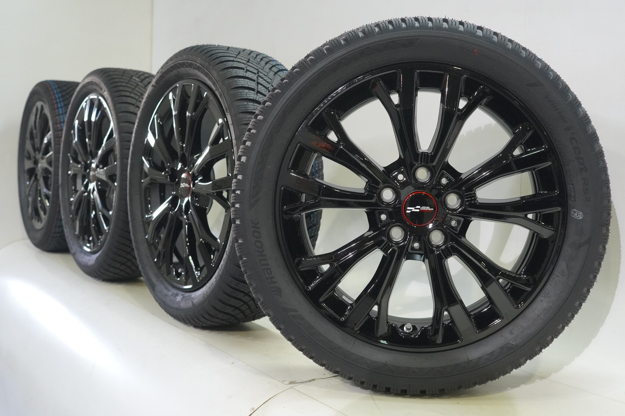Originele wielset van Mini, styling JCW962, 17 inch velgen met Hankook Wintericept RS3 Winterbanden. Deze velgen zijn originele velgen van het merk Mini en geschikt voor: Mini F65 / F66 One / Cooper / Cooper D / Cooper S.